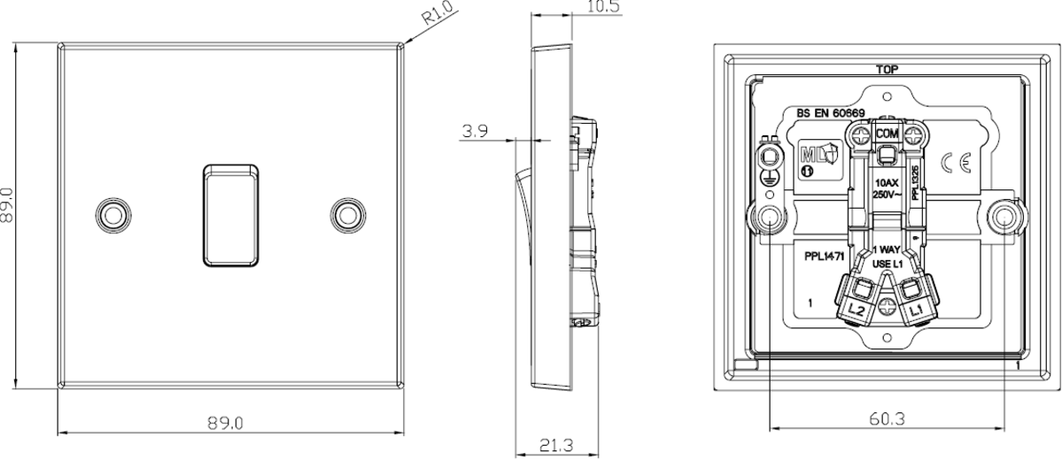 This 10AX 1G 2-way plate switch in brushed chrome is the perfect finishing touch for any modern home. Its square edge metal design with a matching metal rocker enhances the aesthetic appeal while providing functionality.