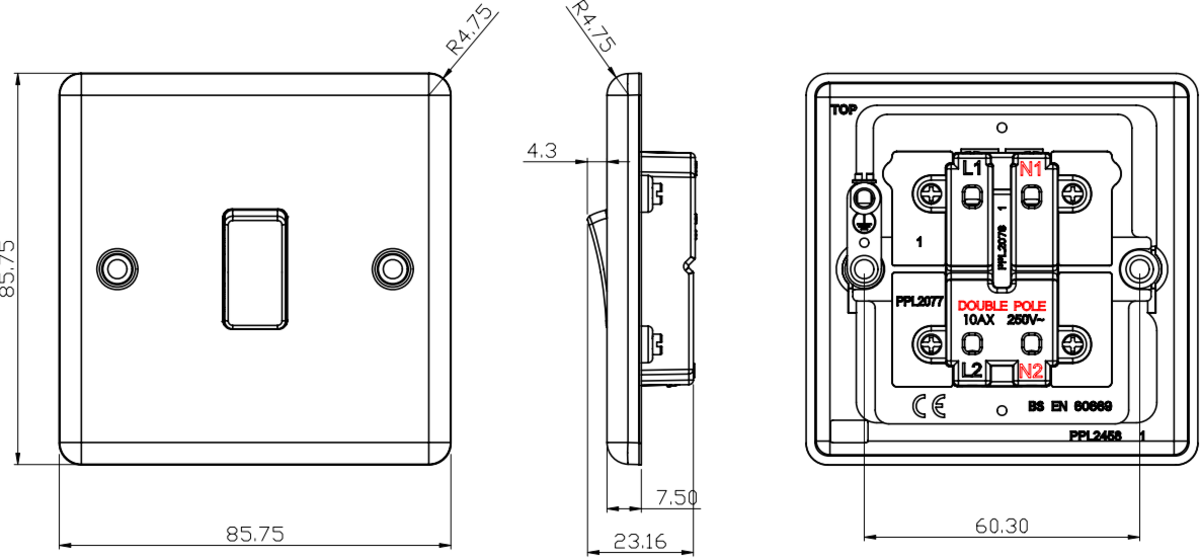 Enhance the aesthetics of your modern home with this stylish 10AX 1G Double Pole Switch in Matt Black. Crafted with rounded edge metal design and a matching rocker, it serves as both a functional and decorative element in your electrical installations.
