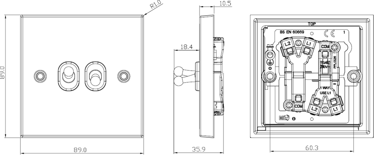 This premium 10AX 2G 2-way toggle switch in a brushed chrome finish is perfect for modern interiors. Its square edge design offers a contemporary look, complemented by a matching metal toggle. Designed for 2-way switch operations, it’s ideal for areas with multiple entrances. This switch is: