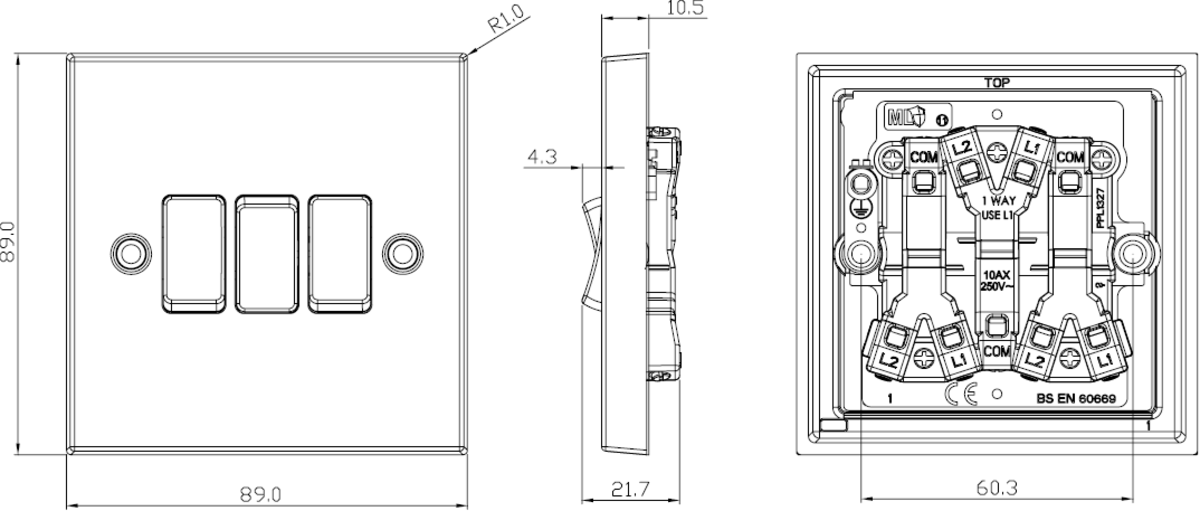 This 10AX 3G 2-way Plate Switch is the perfect finishing touch for any modern home. The square edge metal design with matching metal rocker adds an elegant aesthetic.