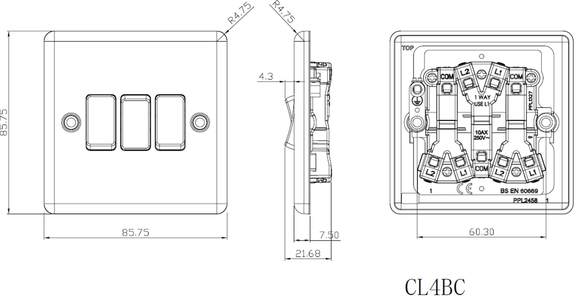 Knightsbridge: CL4MBB, 10AX 3G 2-Way Switch, Matt Black, Rounded Edge, IP20, 230V, EN 60669-1 Certified