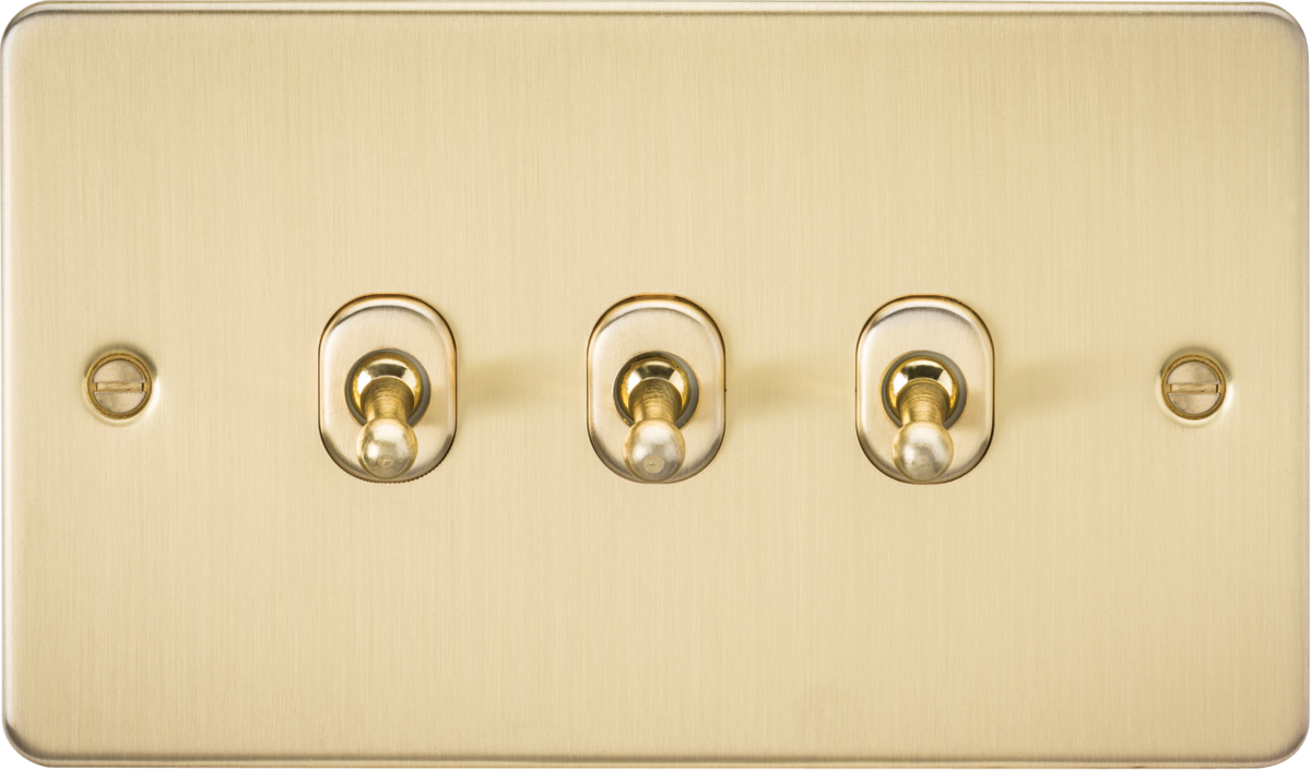 Knightsbridge: FP3TOGBB, 10AX 3G 2-Way Toggle Switch, Brushed Brass Flat Plate, Ultra-Low Profile Design, 230V, 10A