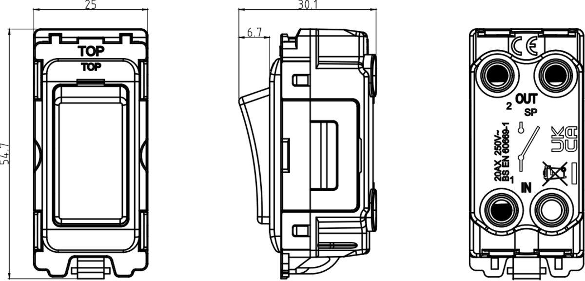 Knightsbridge 20AX 1-way SP Switch Module - Front Mounting