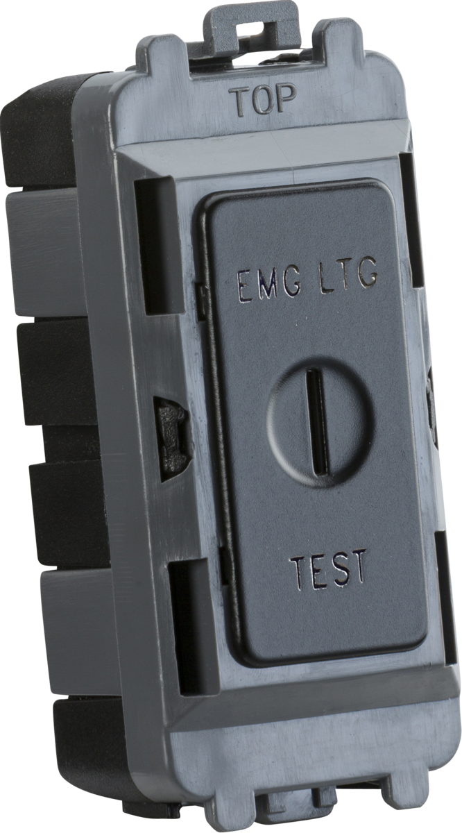 Overview: The 20AX 2-way key switch module, marked EMG LTG TEST, is ideal for use within the Knightsbridge Grid System. This module clips seamlessly into position from the front of mounting frames (sold separately).
