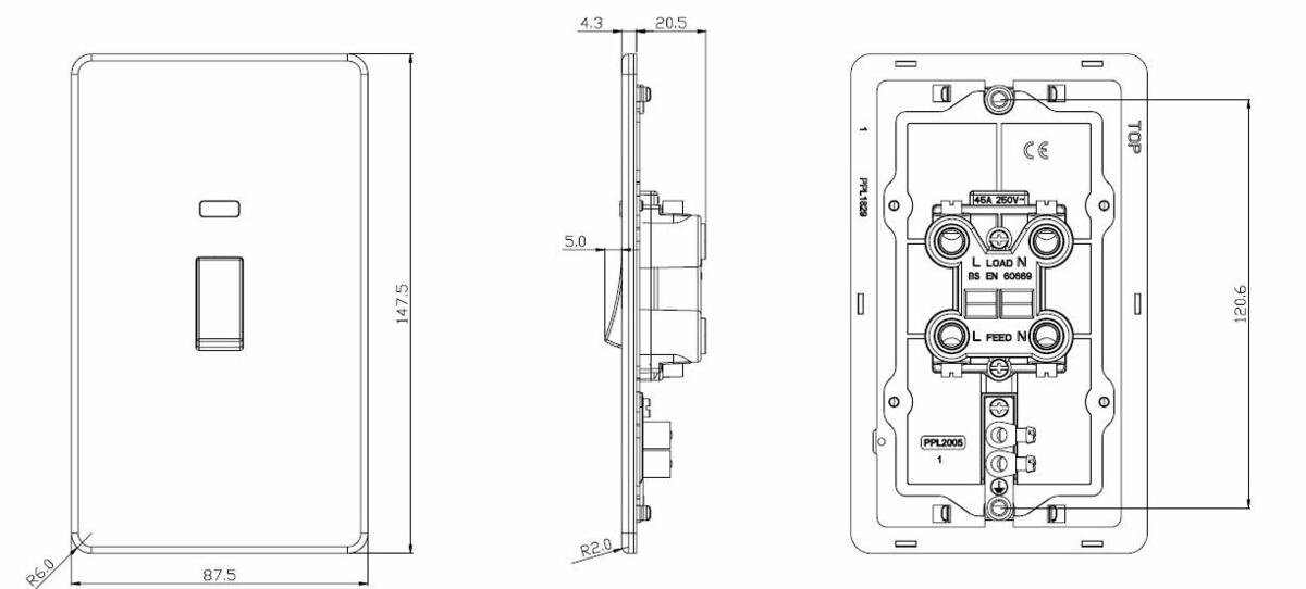 The 45A DP Switch with Neon Indicator allows for safe isolation of cooking appliances, ensuring that maintenance can be performed without risk of accidental activation.