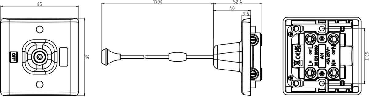 45A DP Pull Cord Switch with Neon Indicator (Sold in packs of 5) features
