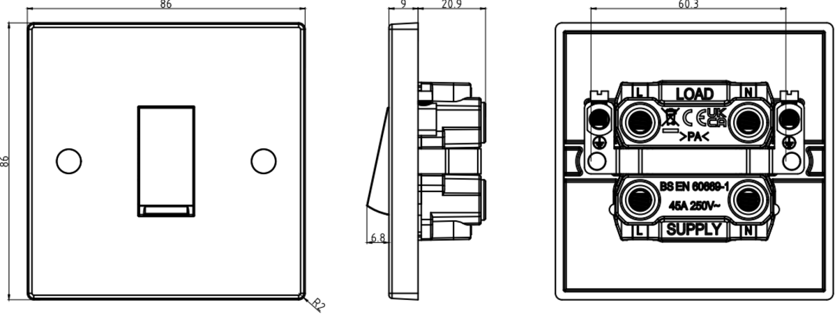 The Knightsbridge 45A Double Pole Switch provides an efficient and reliable solution for your electrical needs. This hard-wearing switch features a stylish white rocker, designed for durability with anti-microbial properties. Ideal for both domestic and commercial use, this switch is certified to EN 60669-1. Below are the key features: