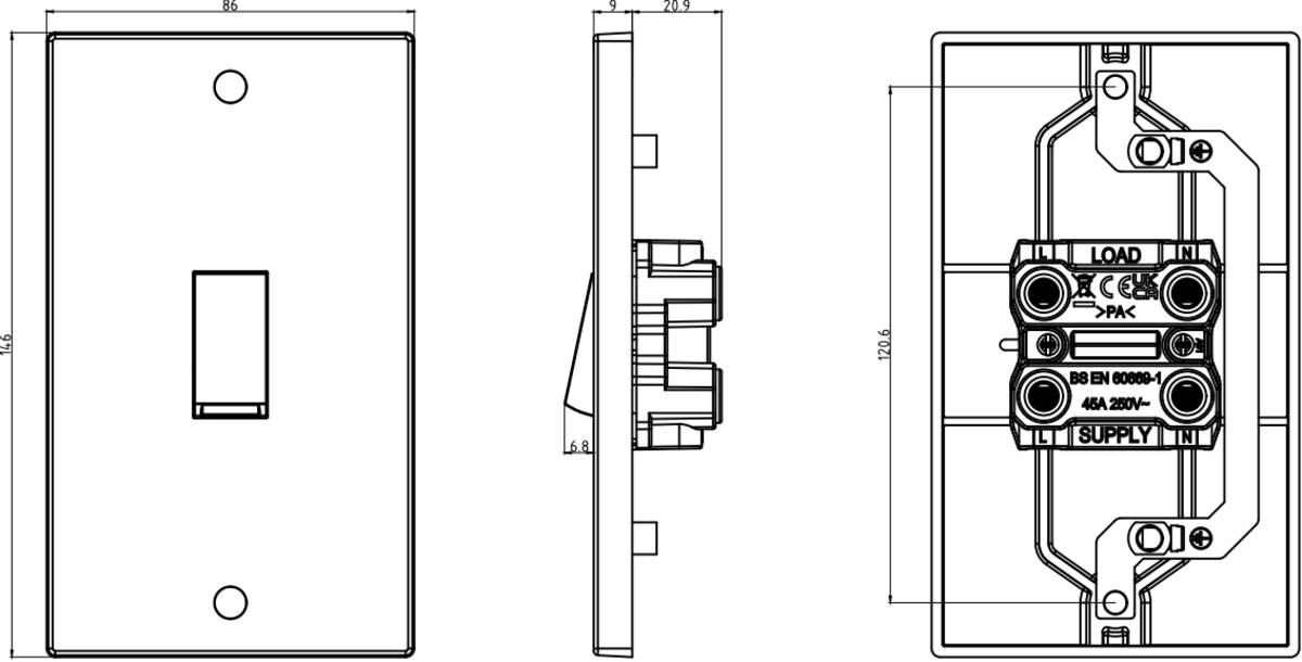 45A Double Pole Switch - White Rocker (Sold in packs of 5) features
