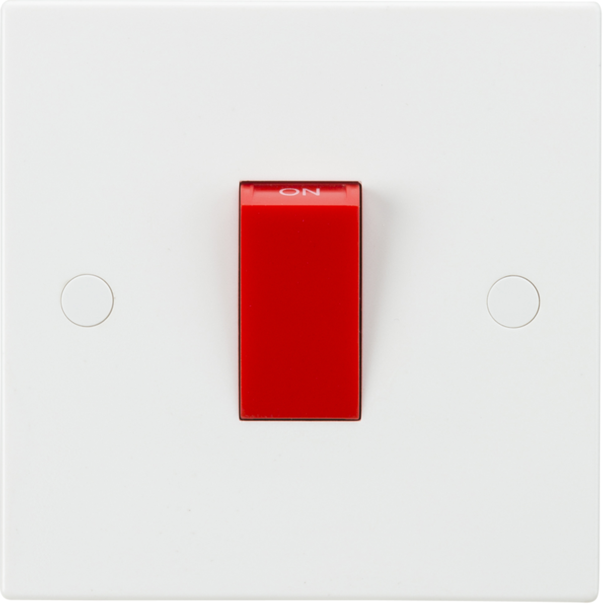 Knightsbridge: SN8331, 45A Double Pole Switch, Red Rocker, 1G Size, IP20, White Thermoset Resin, Pack of 10
