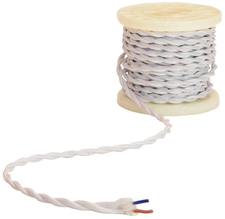 LYYT: 804.542UK, Decorative Braided 2 Core Mains Cable, 5M Length, White, 240 Vac, PVC Insulation, 0.75 mm Core Diameter