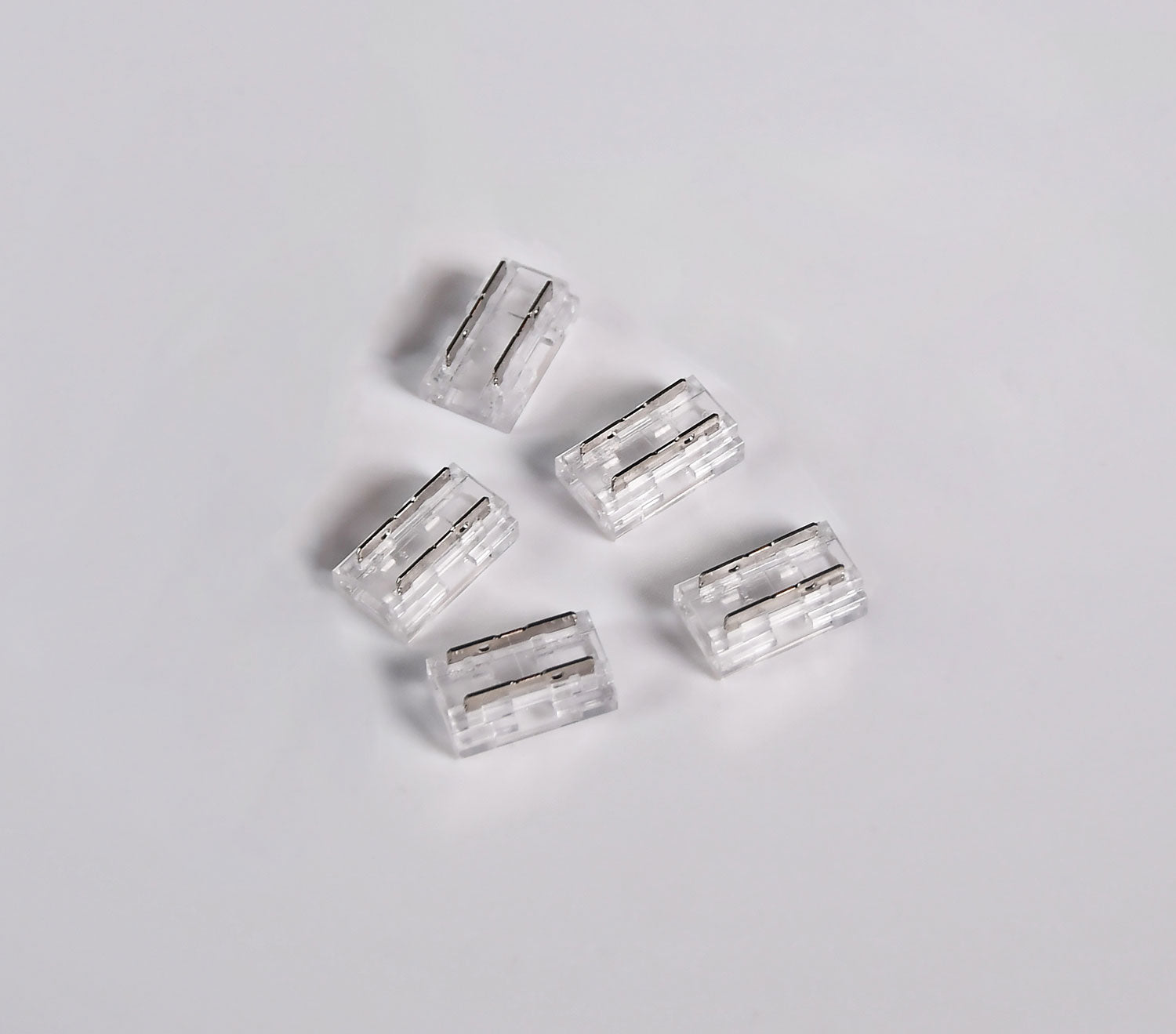 Seamless Single Colour COB Tape Connectors provide an efficient solution for connecting your LED tape in various configurations without the need for soldering. These transparent connectors ensure a professional appearance with a secure, gap-free finish. Here are the key features: