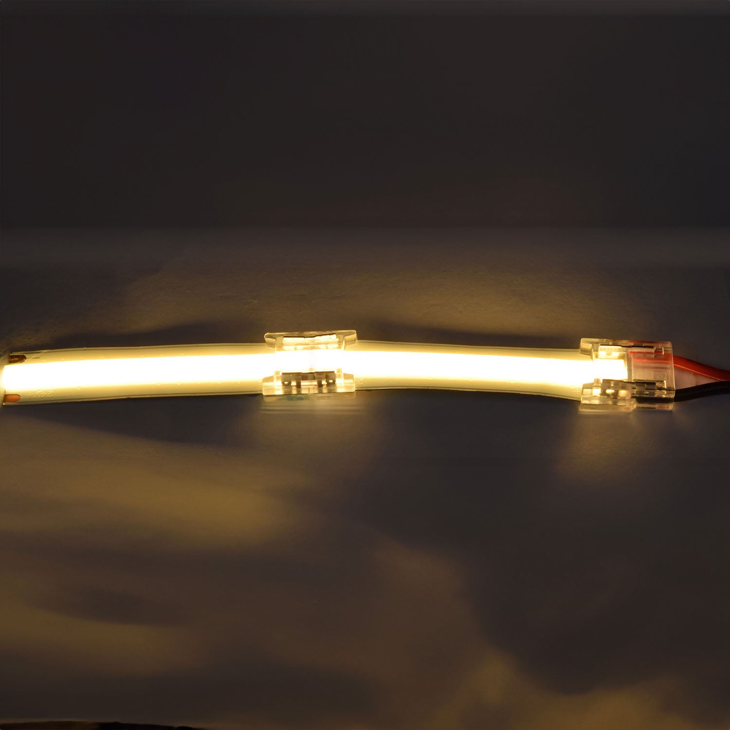 These solderless connectors are essential for connecting two strips of 10mm single colour COB LED Strip, providing a seamless effect for professional installations.