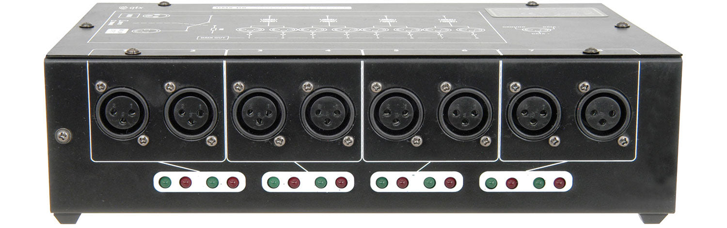 QTX: 154.102UK, 8 Way DMX Booster/Distributor, 1 Input, 8 Outputs, 230V