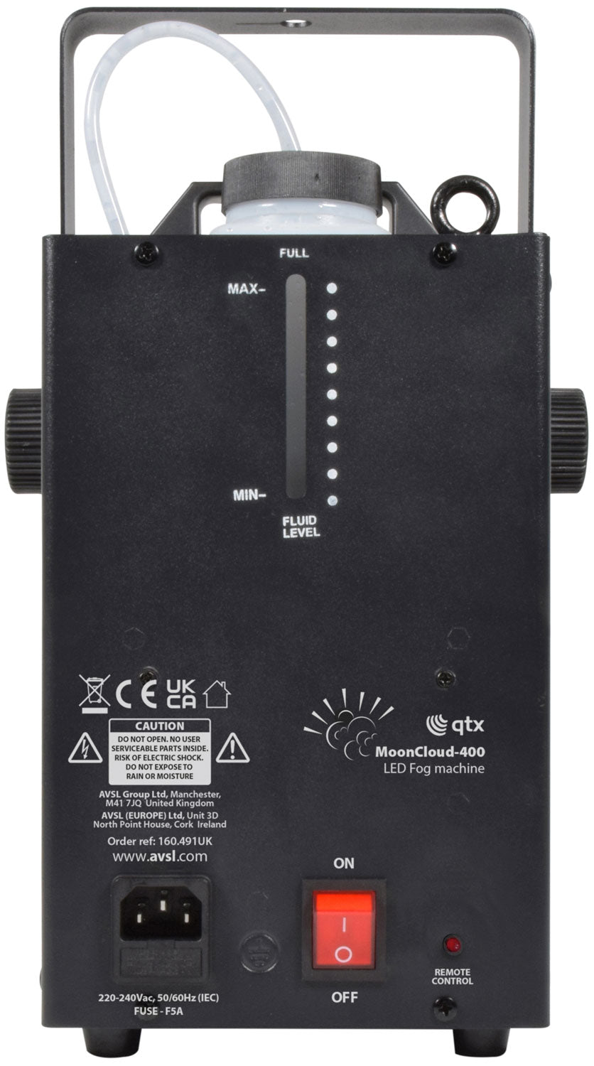 QTX: 160.491UK, Compact 400W LED Fog Machine, RGB Moonflower Effect, 2500 cu.ft/min