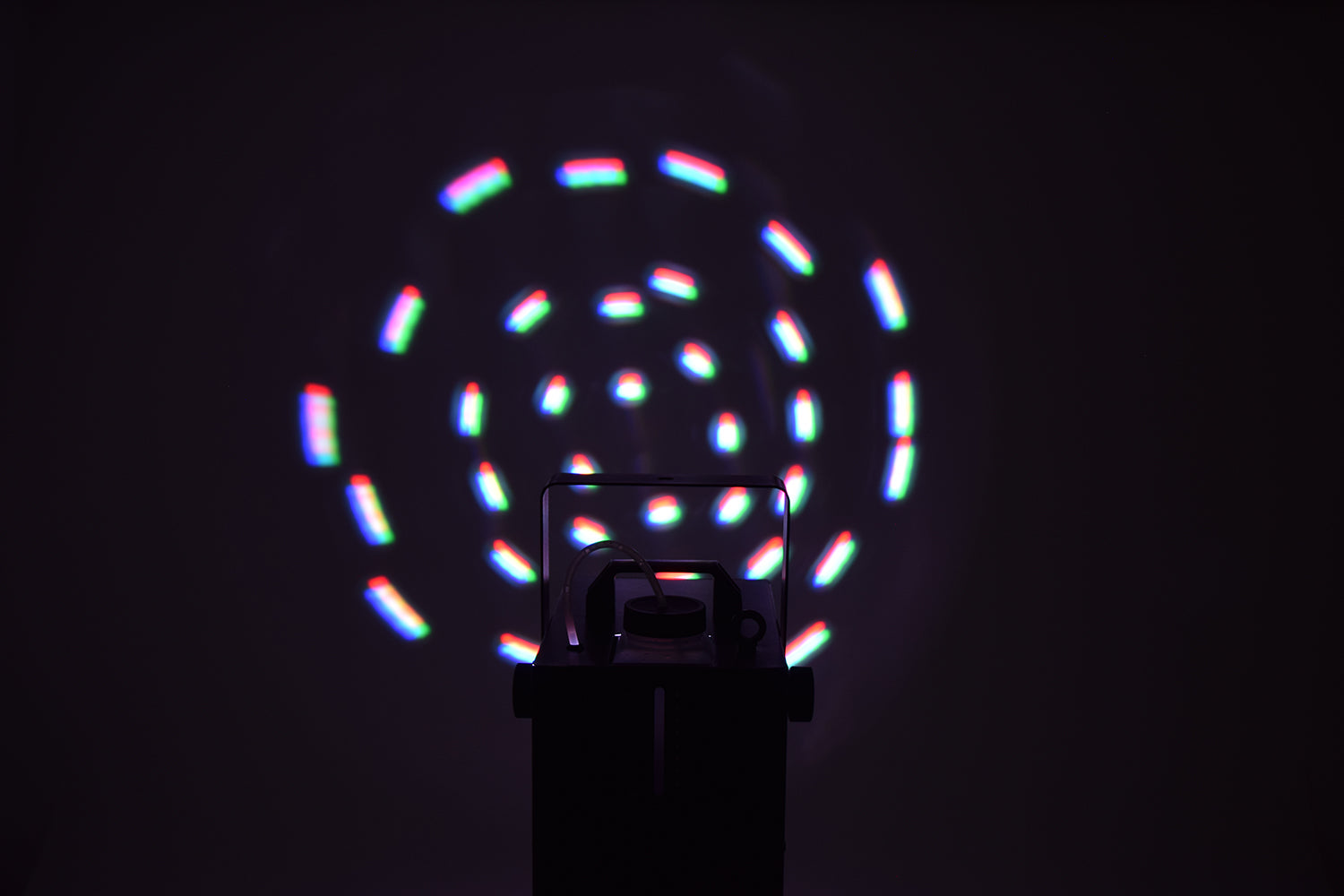 - Compact, portable unit comprising standard fog machine and 2 eye-popping light effects