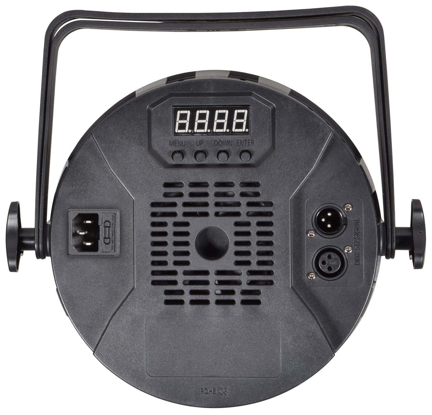 A lightweight, high output LED PAR can fitted with 12 pcs of 15W super bright 6-in-1 COB LEDs. This light can be controlled manually via the controls on the back of the unit, by the internal automatic or sound-activated programs, or with a DMX controller if more precise control is preferred. The tough plastic housing is accompanied by a flexible plastic mounting bracket, giving the whole unit a total weight of only 1.25Kg. It is the ideal solution for parties and events where background colour wash or UV illumination is required.