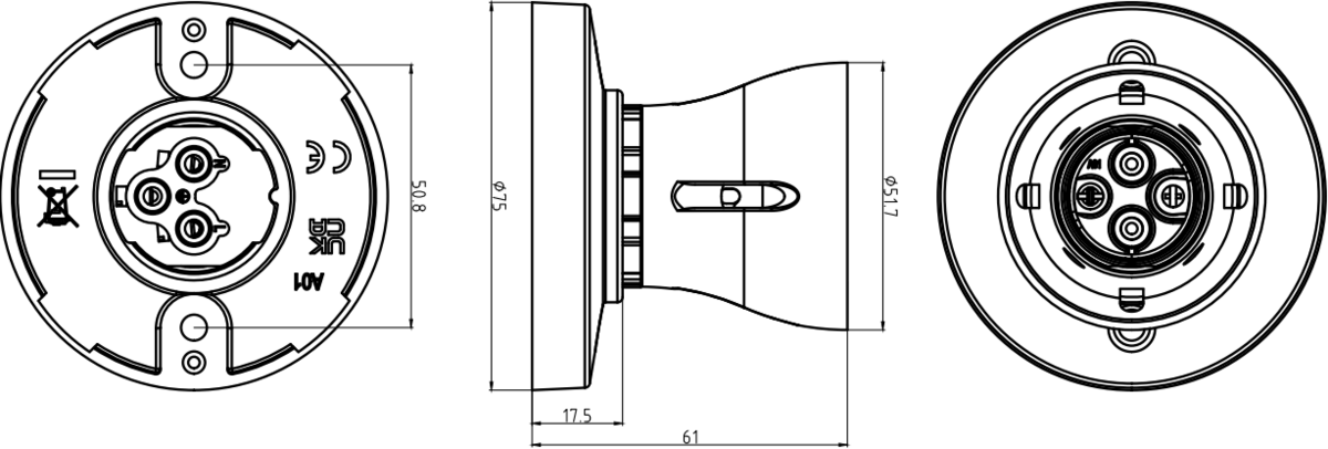 • Dimensions:Diameter 75 mm, Projection 61 mm
