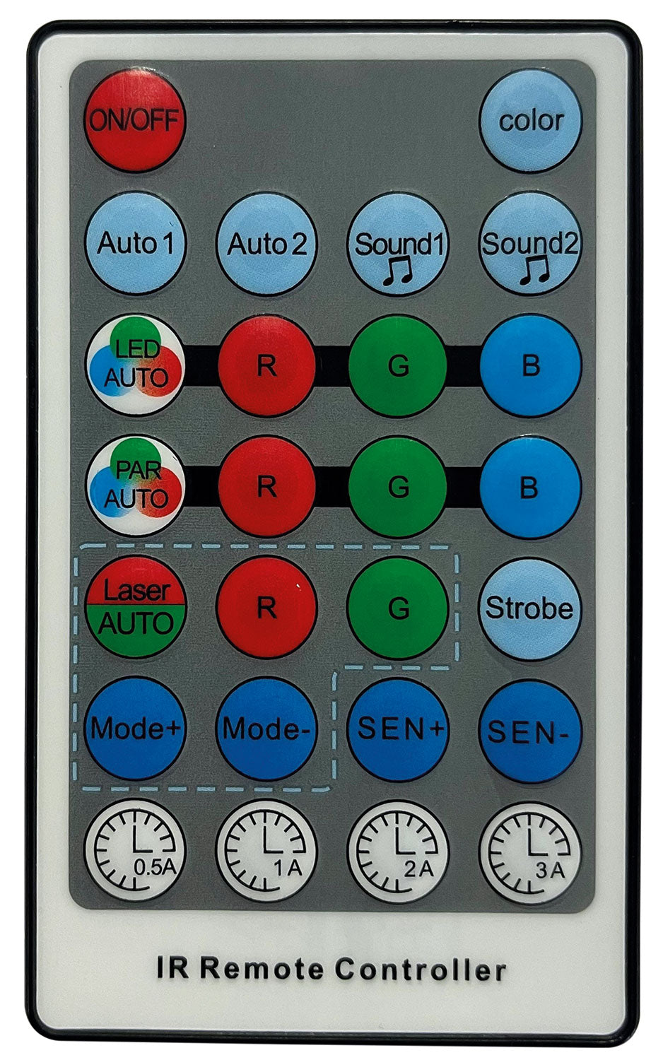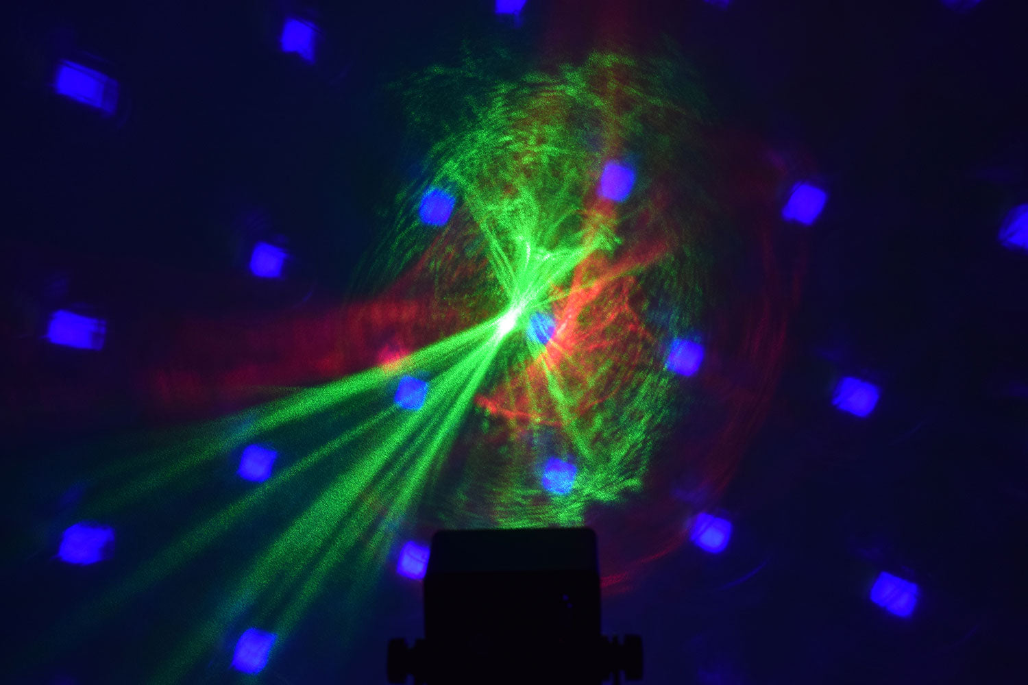 - RGB washes, strobes, magic ball, and 2 colour laser wave effects