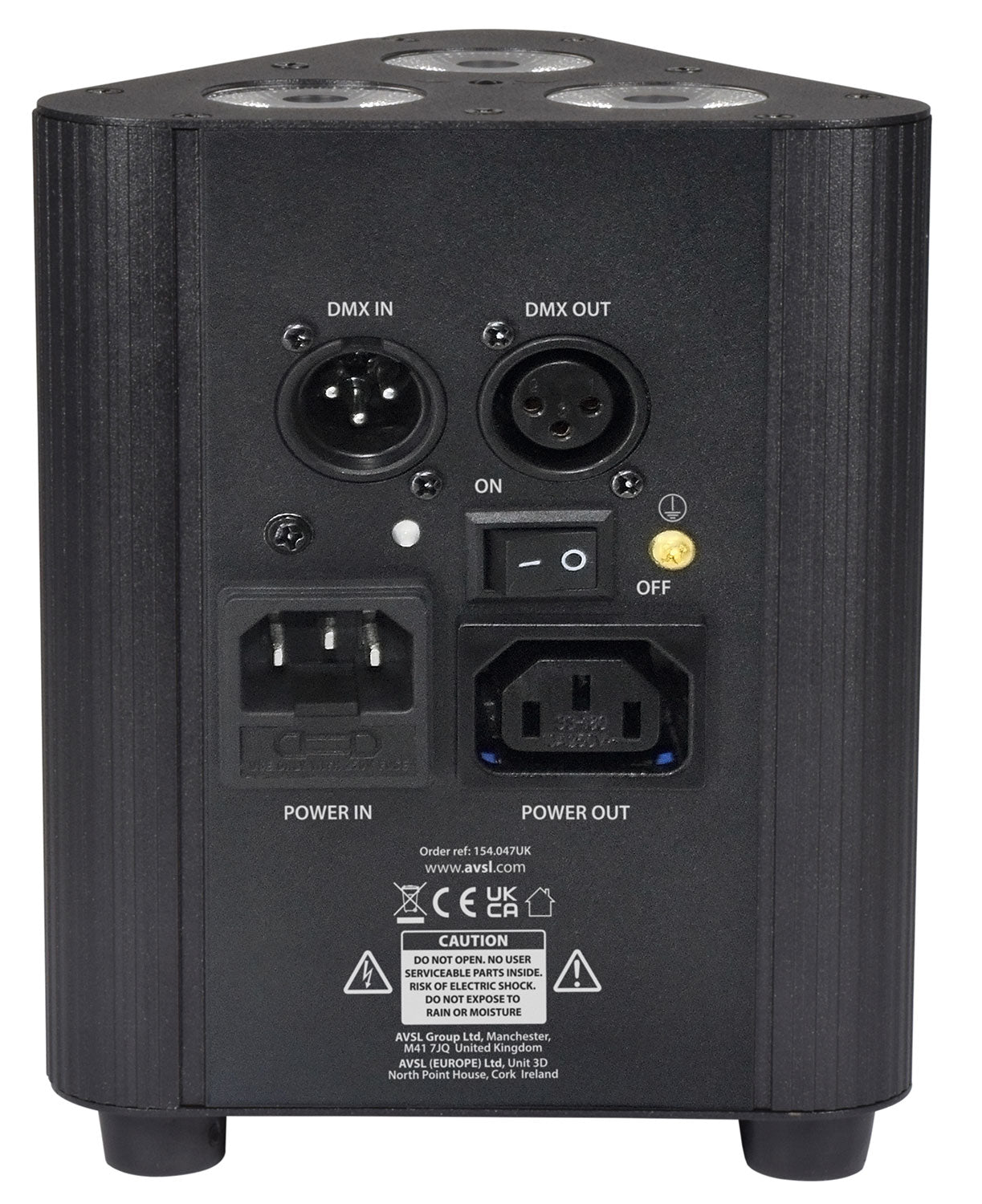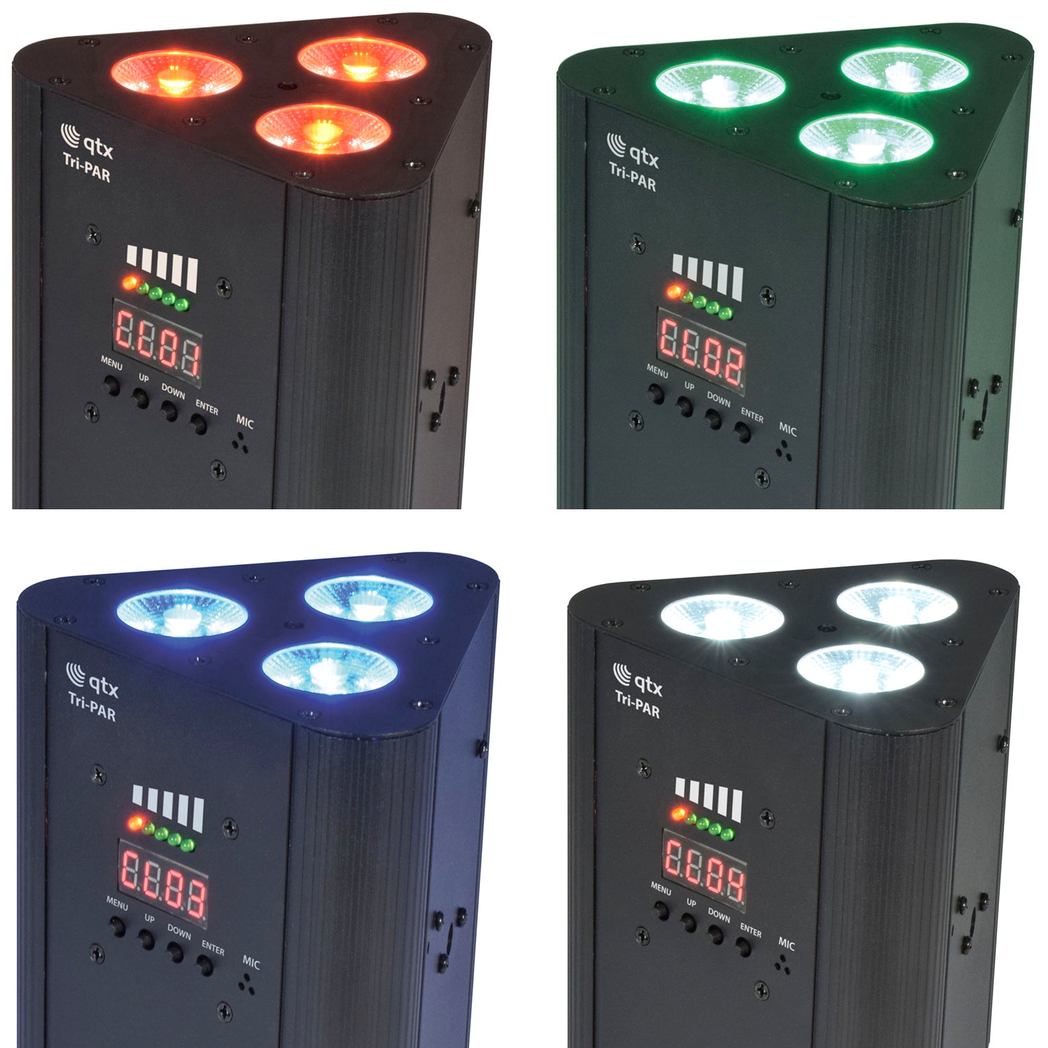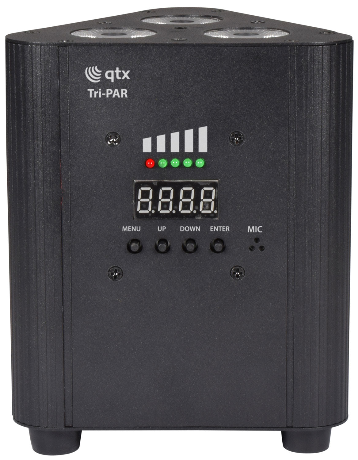 Compact yet surprisingly powerful, the QTX Tri-PAR is perfect for many events and scenarios. Three super bright 4W LEDs provide colourful mixes and washes for walls and ceilings and the internal, rechargeable battery means the unit is totally portable and can be placed in any location without requiring a power source. Simple to operate using the onboard control panel, supplied IR remote control or DMX if preferred, the Tri-PAR is packed with features and integrated light shows that are sure to illuminate any occasion.