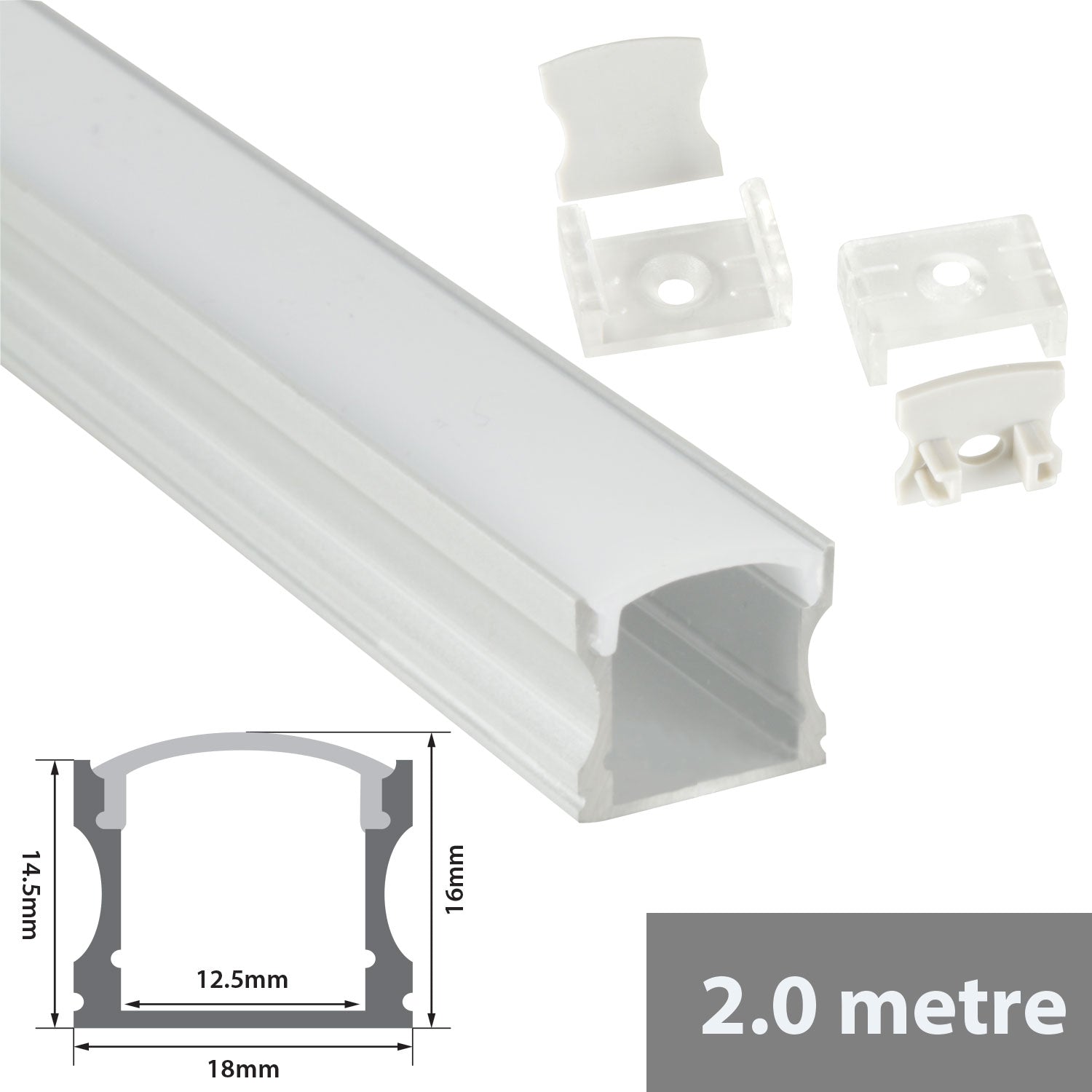 LYYT: 156.818UK, Aluminium LED Tape Profile, Tall Crown, White, 2m, 14mm Diffuser