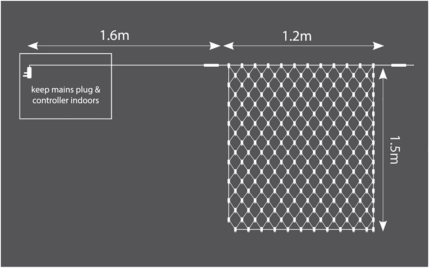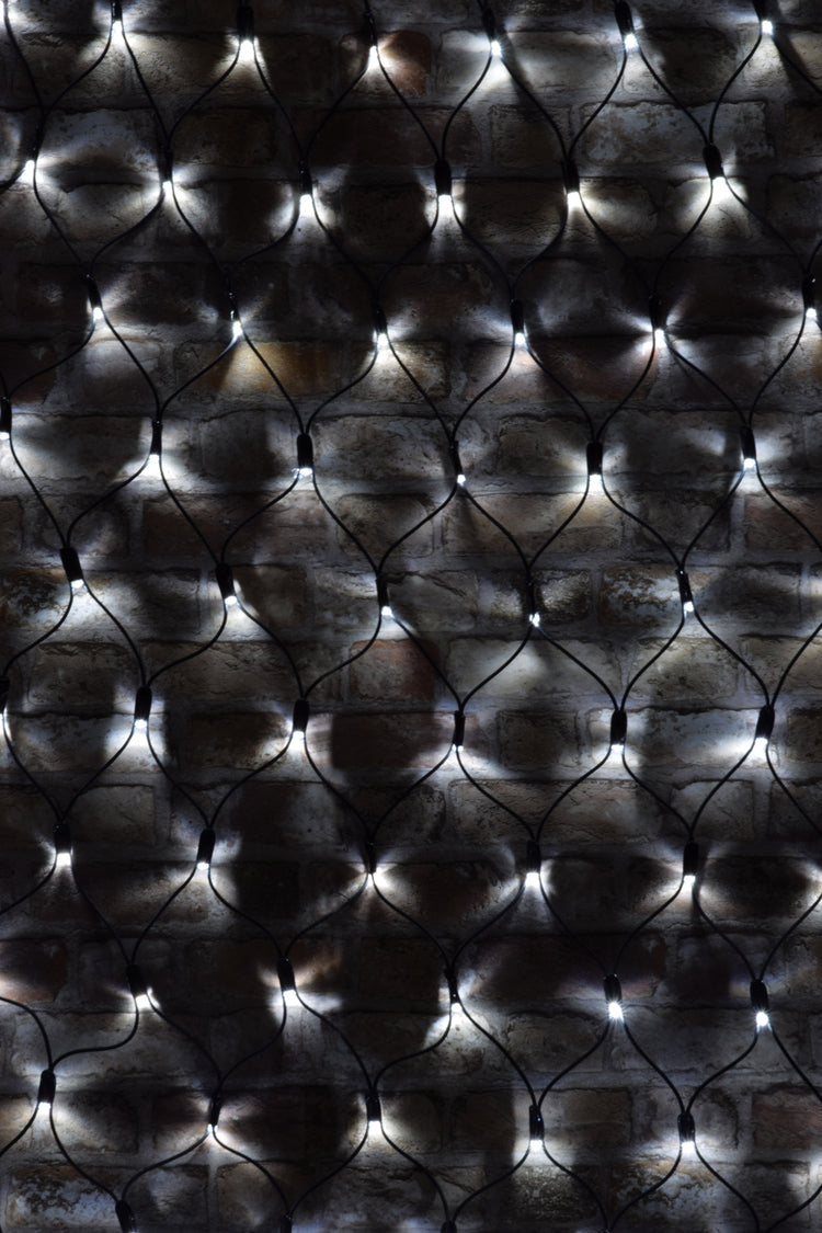 Wide coverage outdoor LED net lights for the festive season, special events and atmospheric evenings all year round. Perfect for creating illuminating backdrops. Up to 50 sets can be connected together and powered from a single plug. The long life, energy-efficient LEDs are fitted with concave heads for consistent and uniform brightness at all angles. Ideal for indoor and outdoor use.