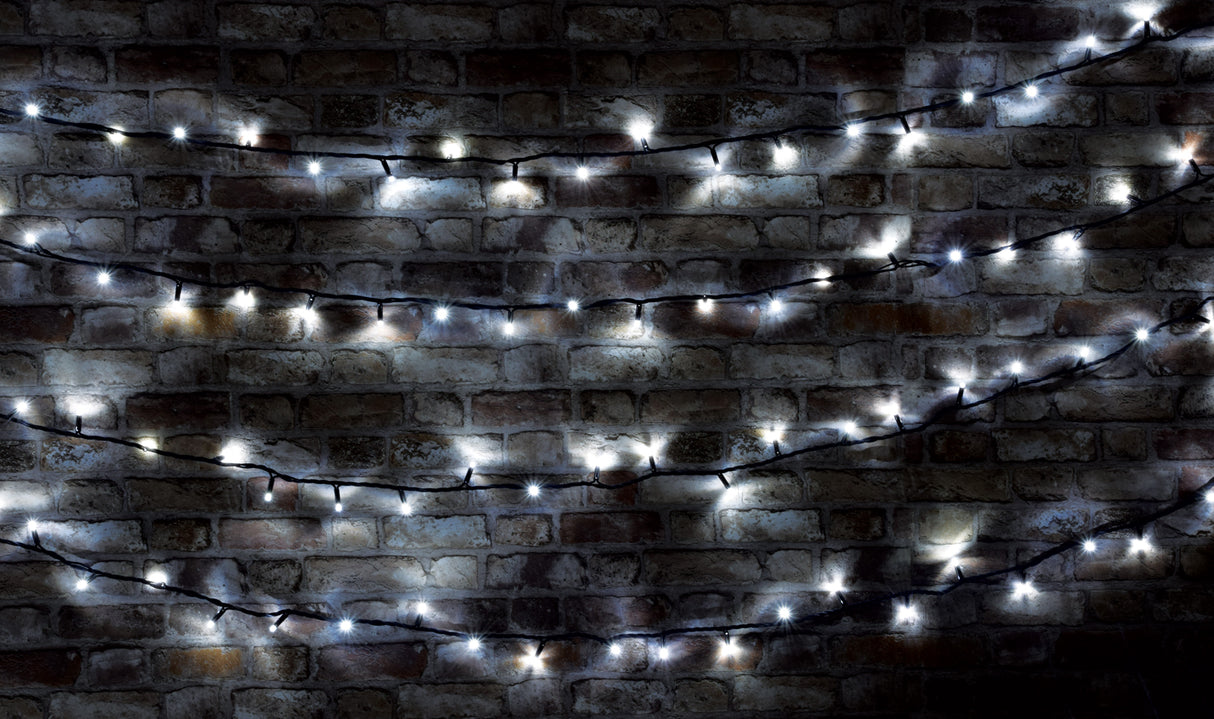 LYYT: 155.481UK, Heavy Duty LED String Lights, 180 LEDs, 20m, IP44, 220-240V, Black Cable