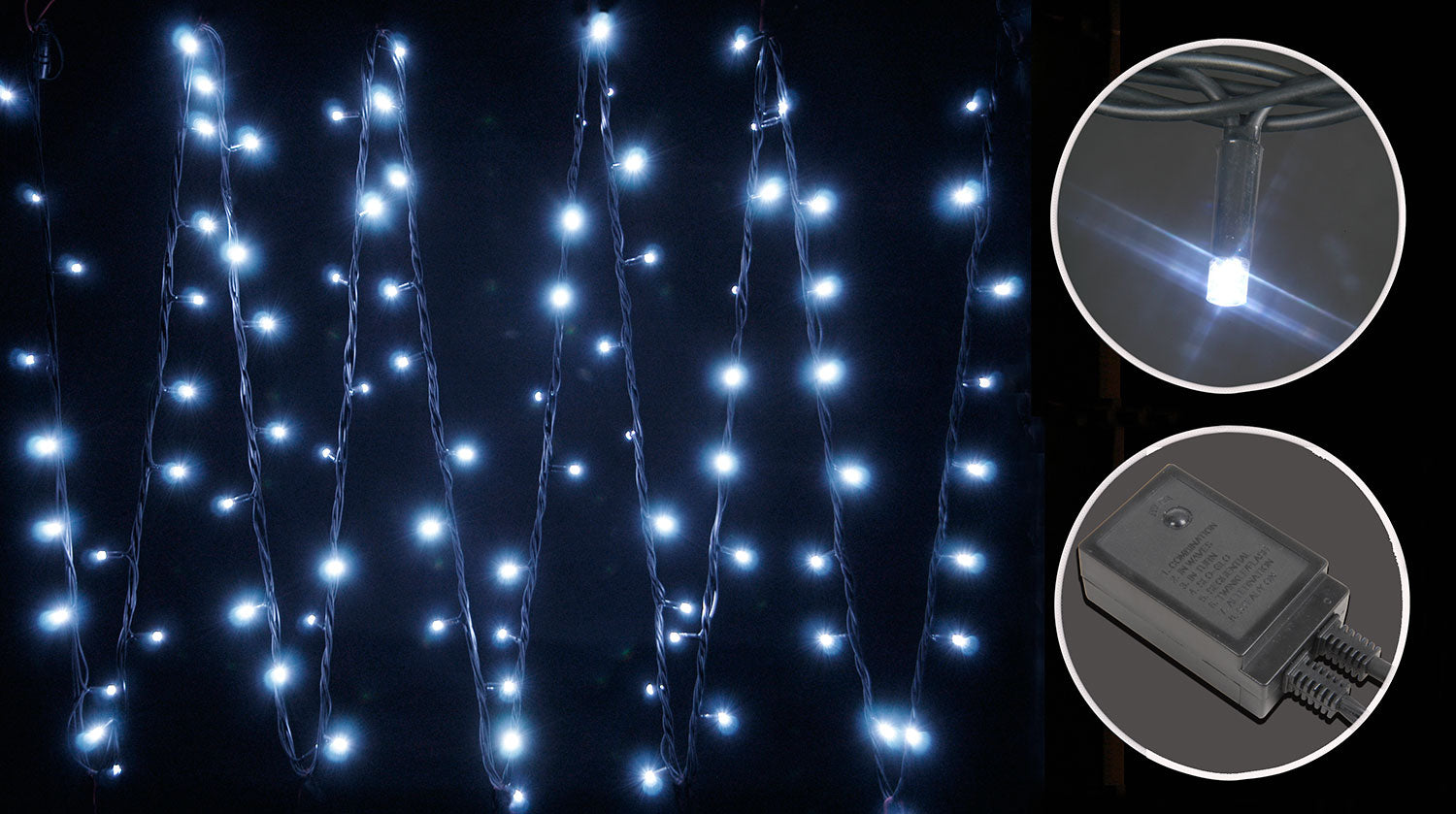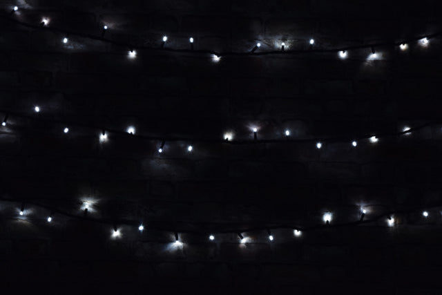 LYYT: 155.485UK, Heavy Duty LED String Lights, 180 LEDs, 20m, White, IP44, Black Cable, 7W