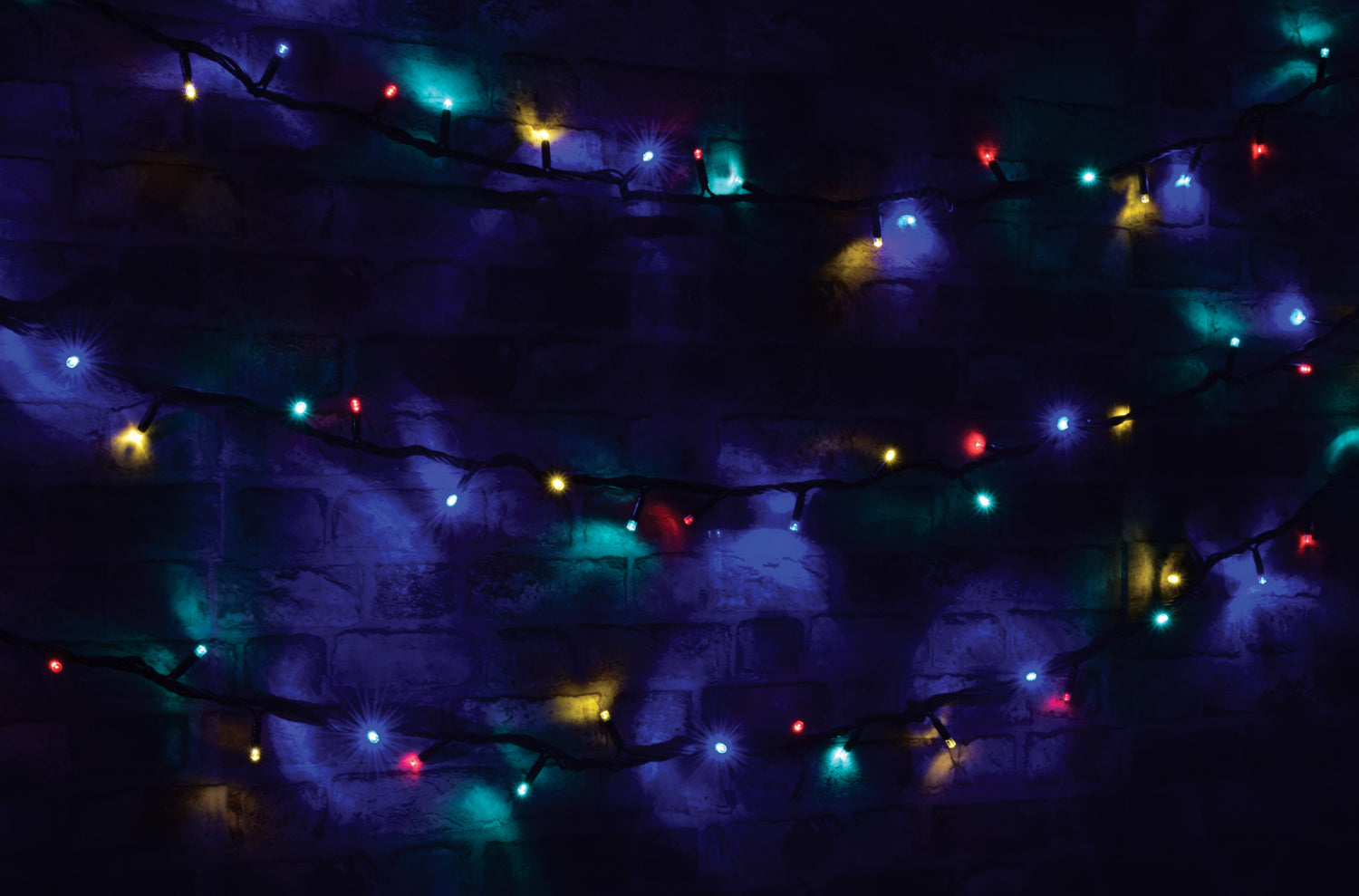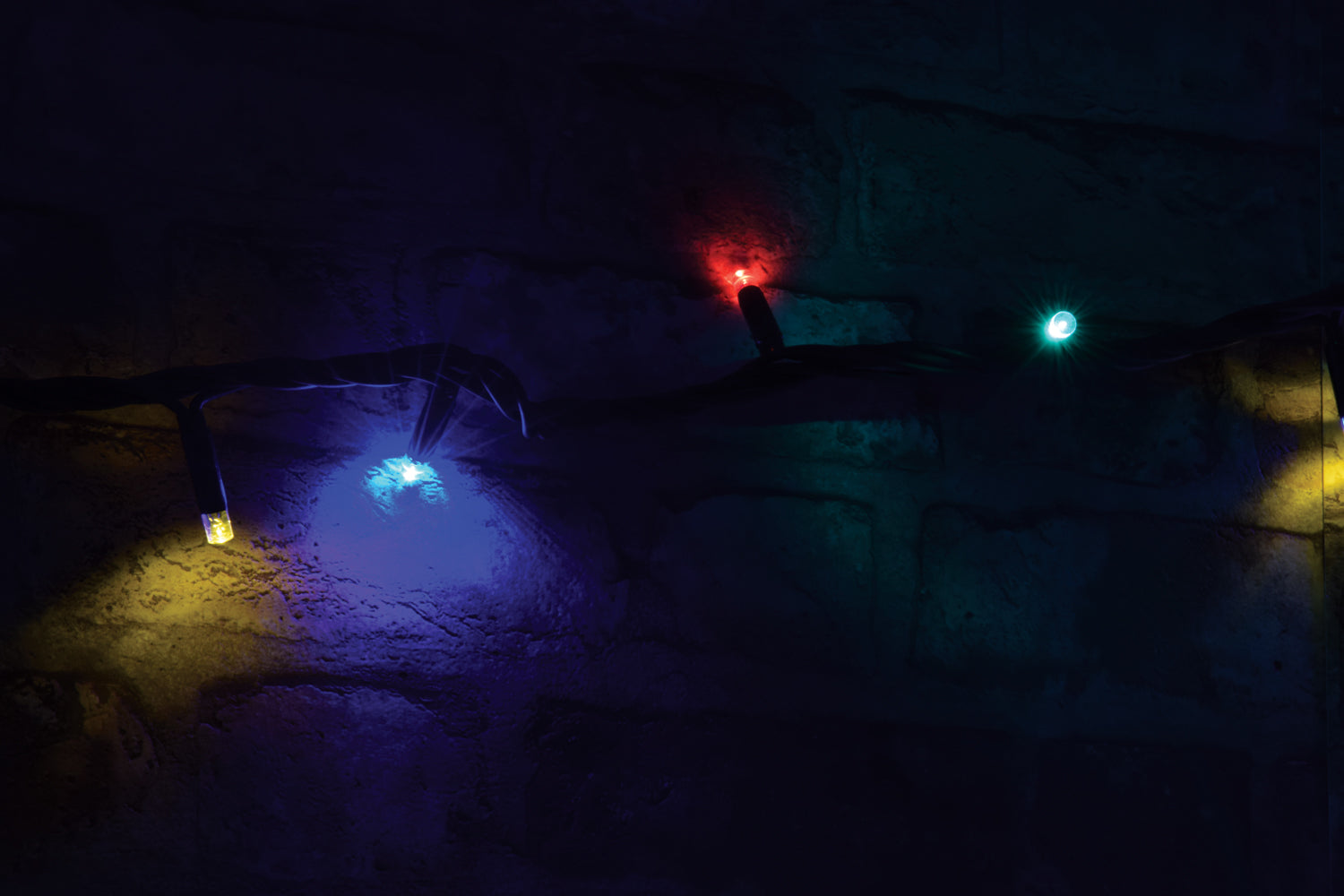 LYYT: 155.409UK, Heavy Duty LED String Lights, 90 LEDs, Multicolour, IP44, 9m Length, Black Cable