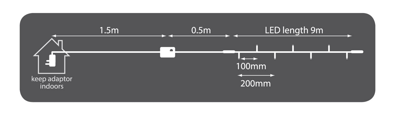 High quality outdoor LED string lights featuring a robust black cable. They offer 8 pre-programmed sequences, allowing you to tailor the mode to your preference with the included controller. Extend the cable from the mains power supply using our optional 5m power extension lead. Each set is connectable, supporting extensions of up to 10 sets for the 90 LED variant and 5 sets for the 180 LED version from just one plug. The long-lasting, energy-efficient LEDs make them ideal for decorating homes and businesses.