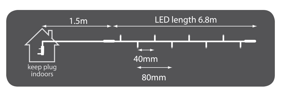 LYYT: 155.586UK, Heavy Duty Outdoor LED String Lights, 180 LEDs, IP44, 1.5m