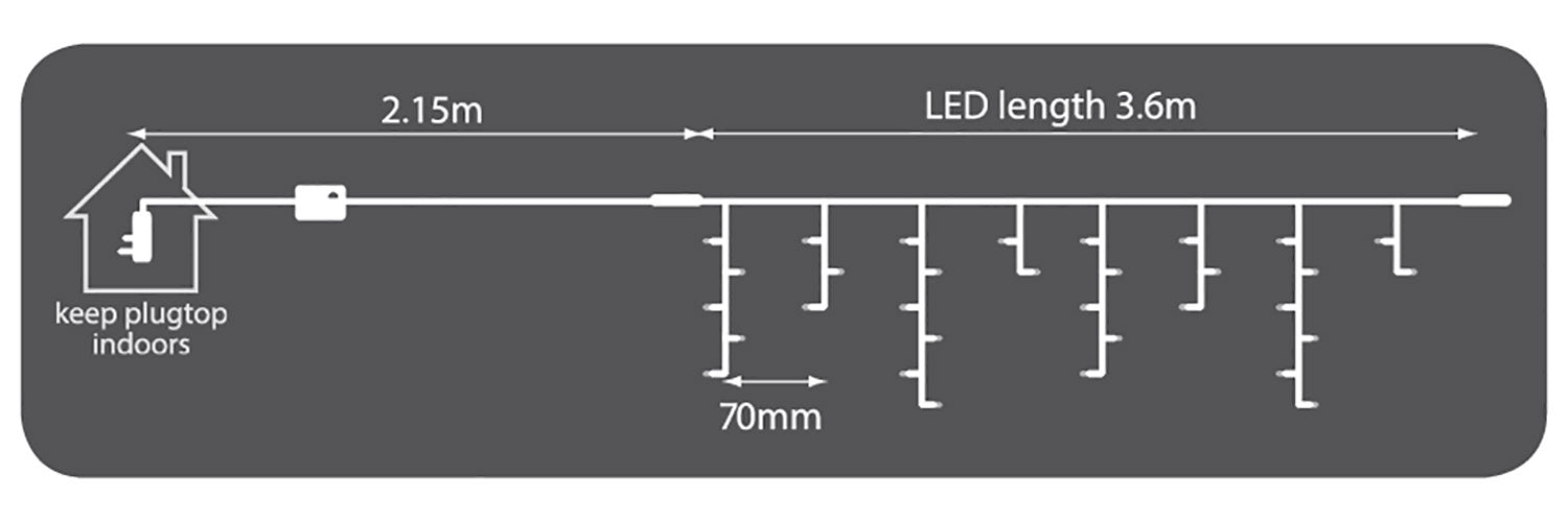 Versatile, icicle-inspired outdoor LED string lights perfect for the festive season, special events, and atmospheric evenings all year round. These high-quality lights can be tailored to numerous decorative requirements with 8 static or sequenced programmes, selectable via the inline controller. The long-lasting, energy-efficient LEDs are fitted with concave heads for consistent brightness at all angles. Ideal for indoor and outdoor use.