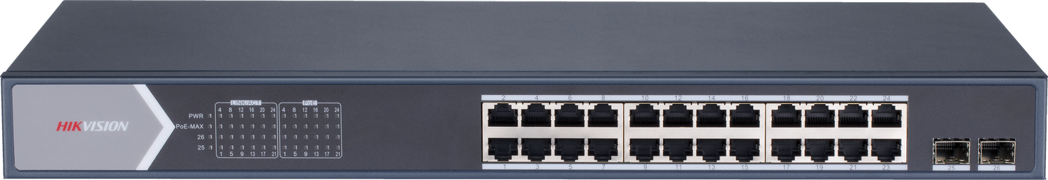 The 24 Port Gigabit Smart POE Switch by Hikvision is designed for high-performance networking with several key features: