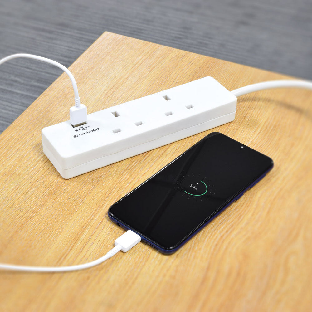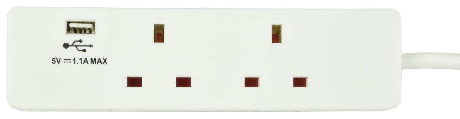 A handy 2-gang mains extension with USB port, ideal for charging multiple devices such as smartphones, tablets, MP3 players and digital cameras.