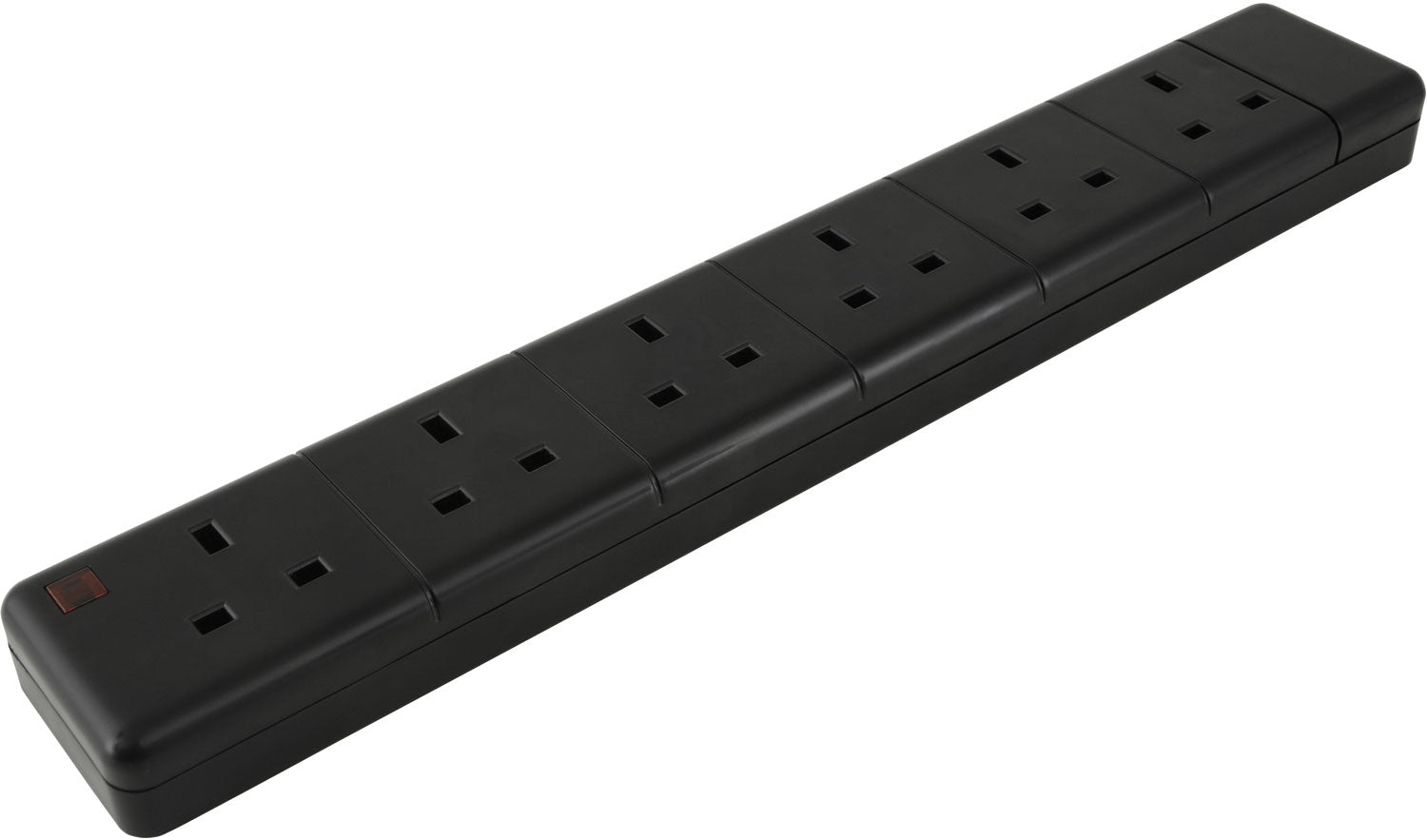 6-Gang Trailing Socket (13A, Black) (Sold in packs of 10)