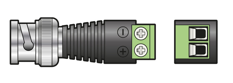 BNC plug with twin modular terminals for simple, solder-free connections. A cheap and easy solution for CCTV installations.