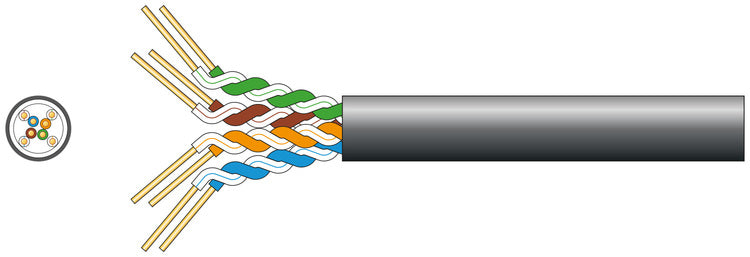 Cat5e oxygen free copper 4x twisted pair data cable with LDPE sheath. Supplied in dispensing box and marked at 1 metre intervals, this cable is designed for high speed data transmission such as Gigabit Ethernet applications.