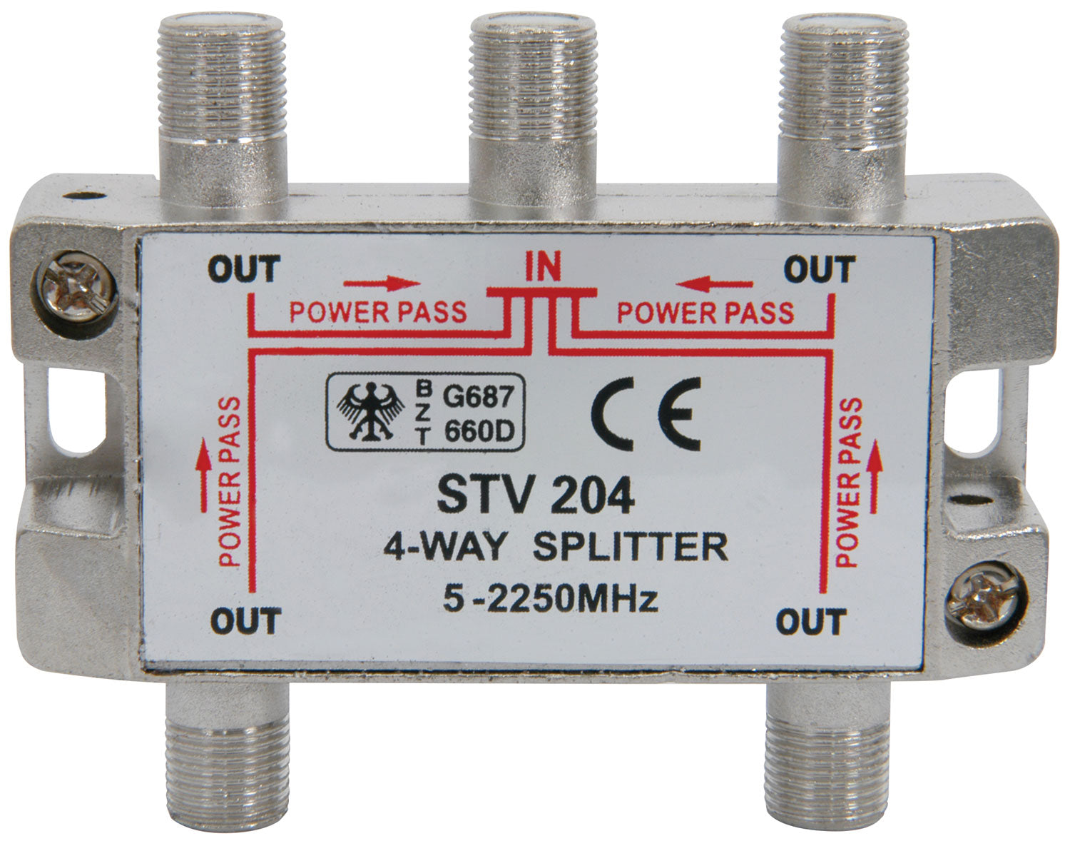 4-Way F-Type Satellite Splitter (5-2250MHz)