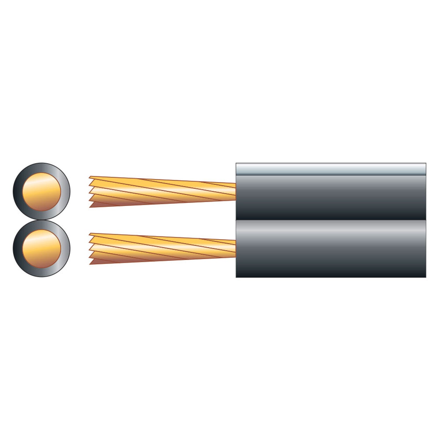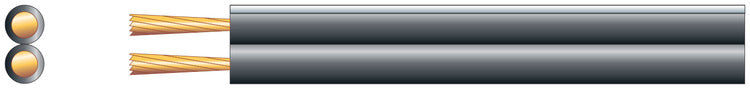 A range of flexible, standard speaker cable with a mix of solid copper and CCA conductors and a polarity line indicator.