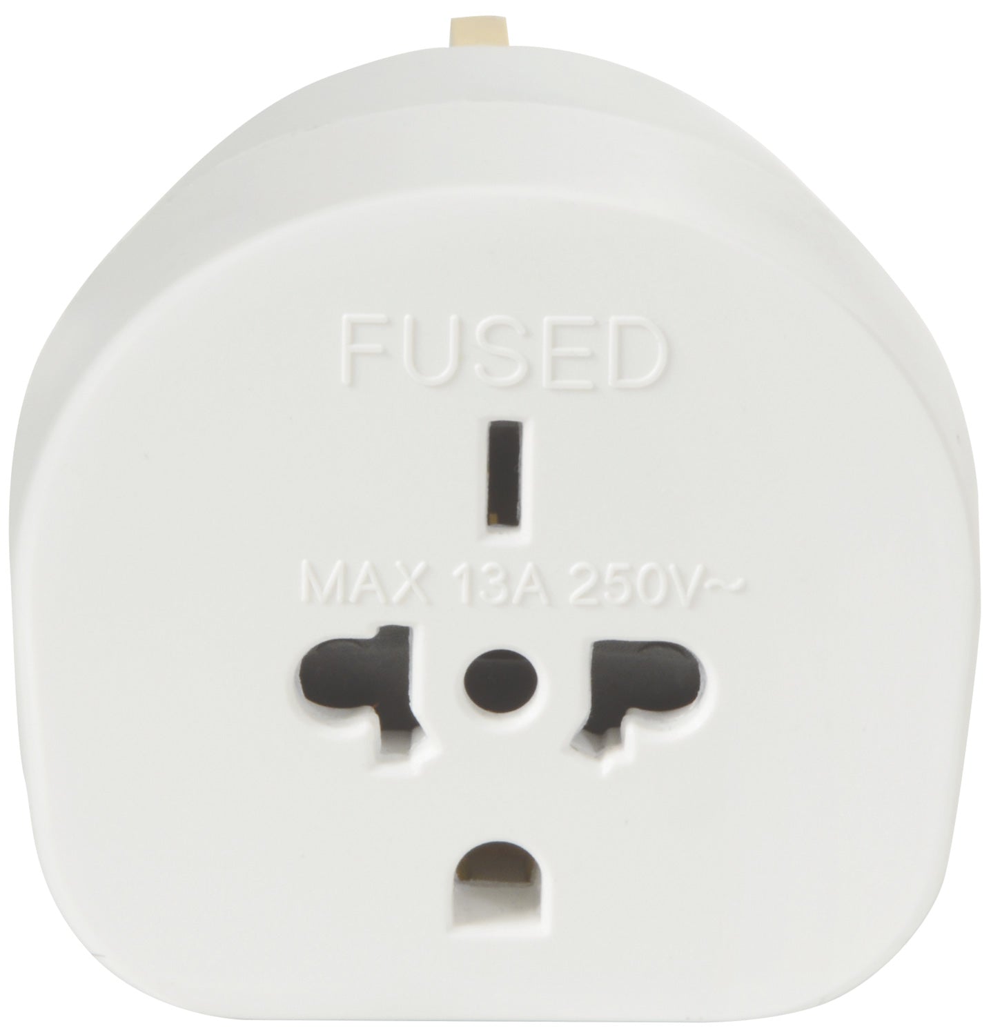 Plug in adaptor that allows equipment from various countries across Europe, America, Australasia and China to be used in a UK mains outlet. NOTE: Does not earth with side contact earth plugs.