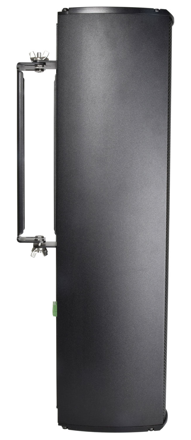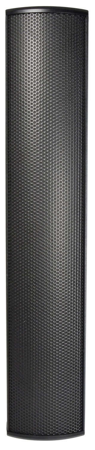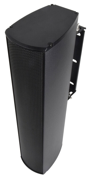 High power handling weatherproof column speakers for indoor or outdoor foreground PA duties. Powder coated extruded aluminium enclosures are fitted with a linear array of neodymium main drivers and a single HF tweeter with reflex porting to provide a full sound with a balanced frequency response that is normally only possible with more traditional speaker enclosures. Each column has a transformer that can be tapped at various power settings or for low impedance operation. The high power handling makes these columns a direct replacement for full-size PA speakers and can be deployed in areas where large cabinets are not possible. Installation is made neat and convenient using the heavy-duty tiltable rear bracket. With an ingress protection of IP55, these speakers may be safely installed in sheltered outdoor areas for discreet external public address, delivering a powerful sound that belies their size and format.