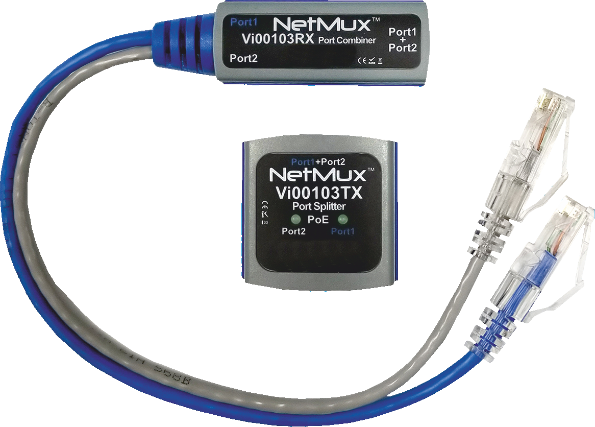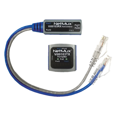 Overview: The Vi00103 port multiplexer allows you to connect two IP/PoE devices over a single Cat5/6 cable, greatly simplifying installations.