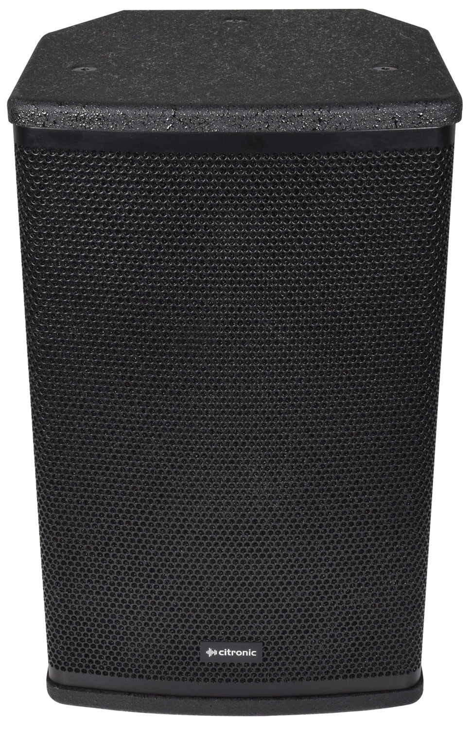 Premium full-range passive speaker cabinets with a polyurea coated wooden enclosure and powder-coated steel grille. A high power-handling main driver and efficient titanium diaphragm HF compression driver combine with the tuned enclosure to deliver a balanced output of all frequencies. The rear panel has 2 parallel inputs for Speakon connection, also enabling linking onto additional speakers. Each cabinet has 2 side handles and a 35mm pole-mount socket for stand mounting. The rear of the cabinet has 2 different bevels for angled placement at ground level or for suspended arraying, multiple M8 flying points are inset on each cabinet. Recommended for use with Citronic PLX, D and H-series amplifiers for a wide range of professional high power sound reinforcement situations.