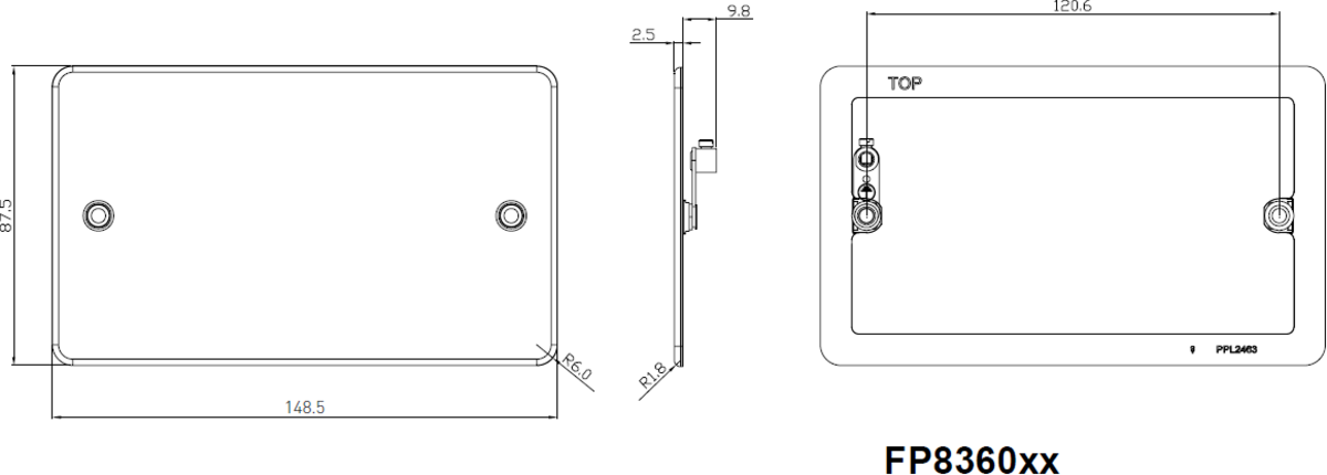 Knightsbridge: FP8360PL, 2G Blanking Plate, Ultra Low Profile, Pearl Finish, IEC Certified, 147.5mm x 87.5mm