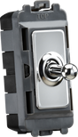 Introducing the 20AX Intermediate Grid Toggle Switch in polished chrome, designed for use with the Knightsbridge Grid system. This premium quality switch clip easily into mounting frames from the front.