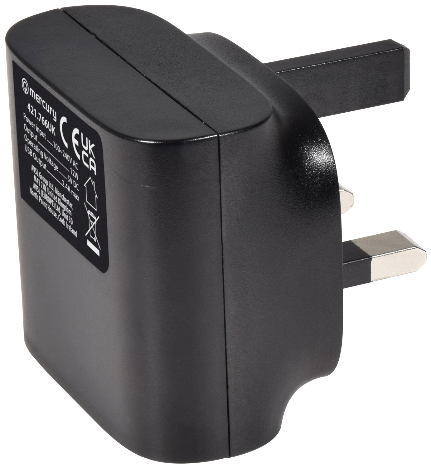 Mercury: 421.766UK, Dual USB Mains Charger, 2.4A Output, Compact & Lightweight