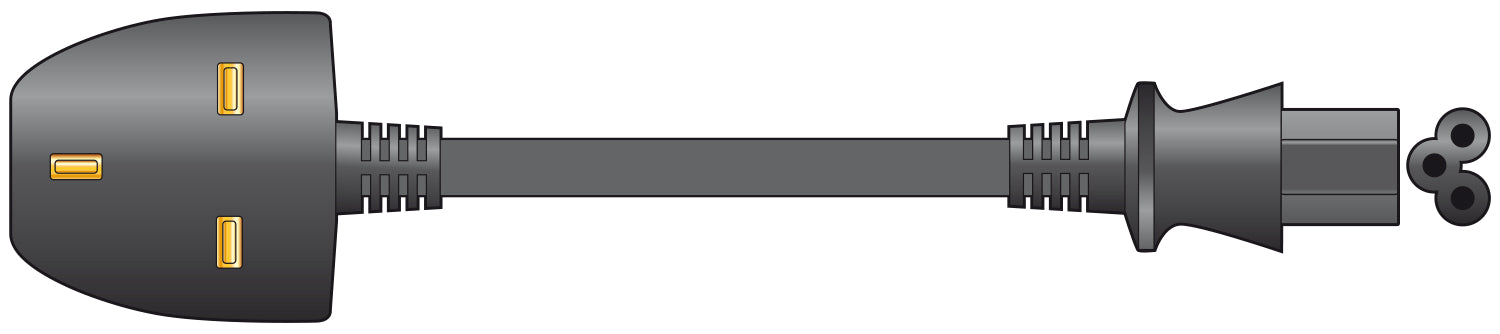 UK 3 pin plug to clover leaf plug, 3 core mains power lead, suitable for connecting power to small electronic equipment of up to 575W.