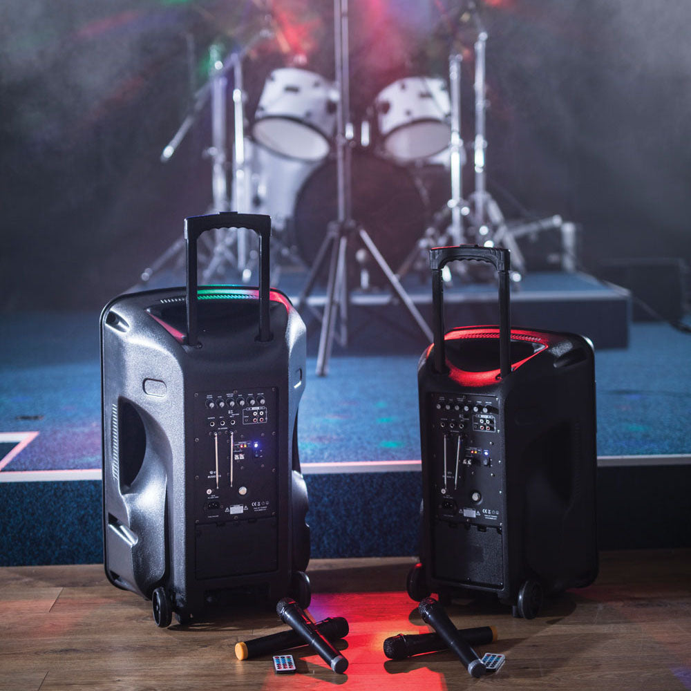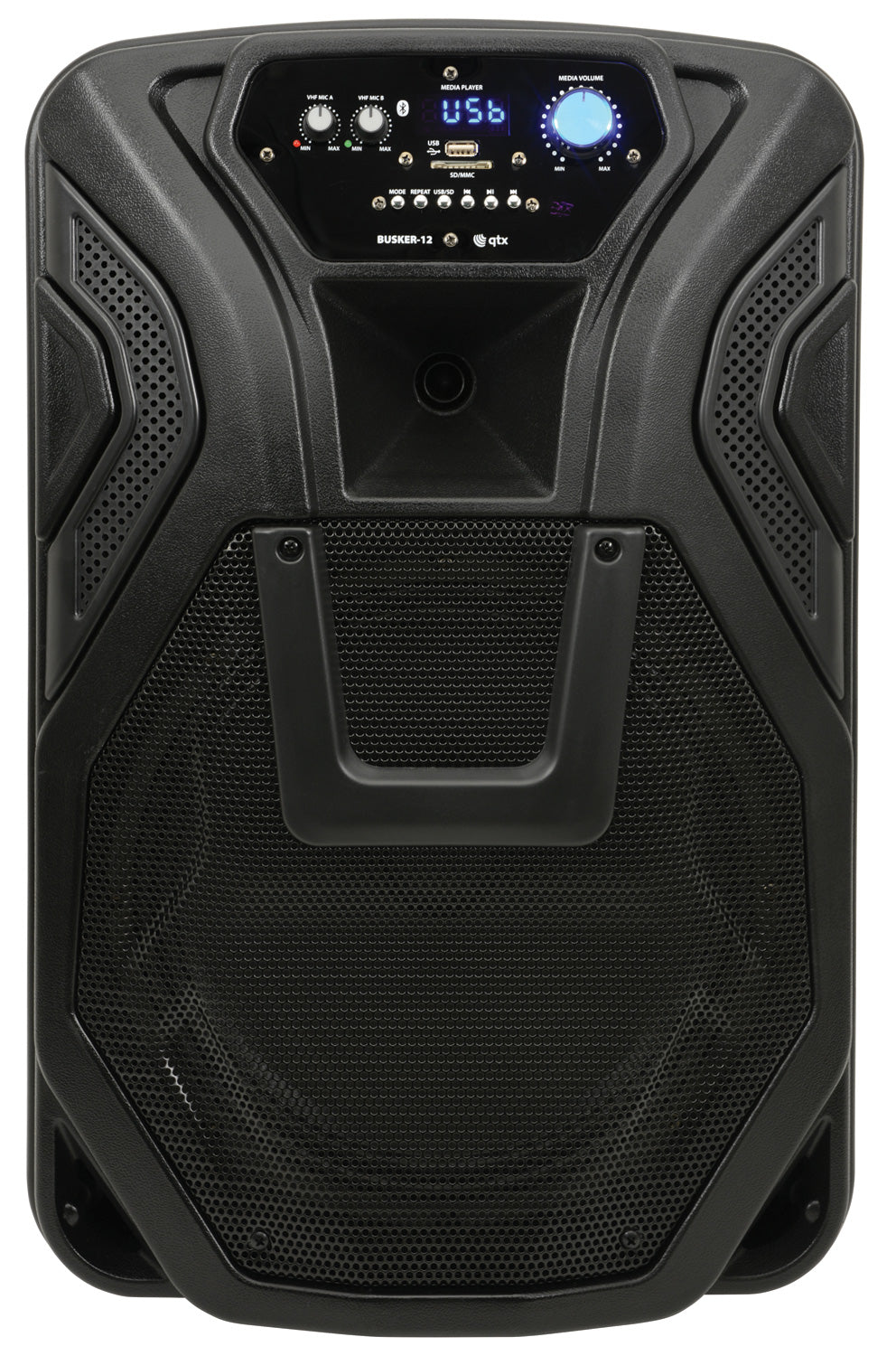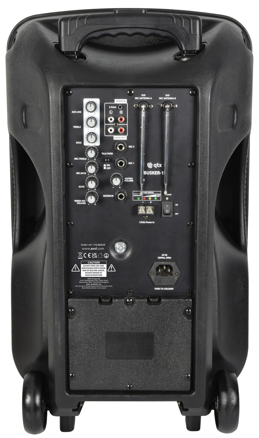 QTX: 178.866UK, 12" Portable PA System with VHF Microphones & Media Player, Rechargeable, Built-in Trolley