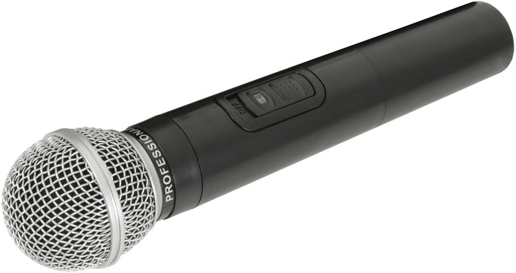 Handheld wireless microphone as alternative or replacement for QTX portable PA units. Available in VHF for QRPA and QXPA or UHF for QXPA-plus.