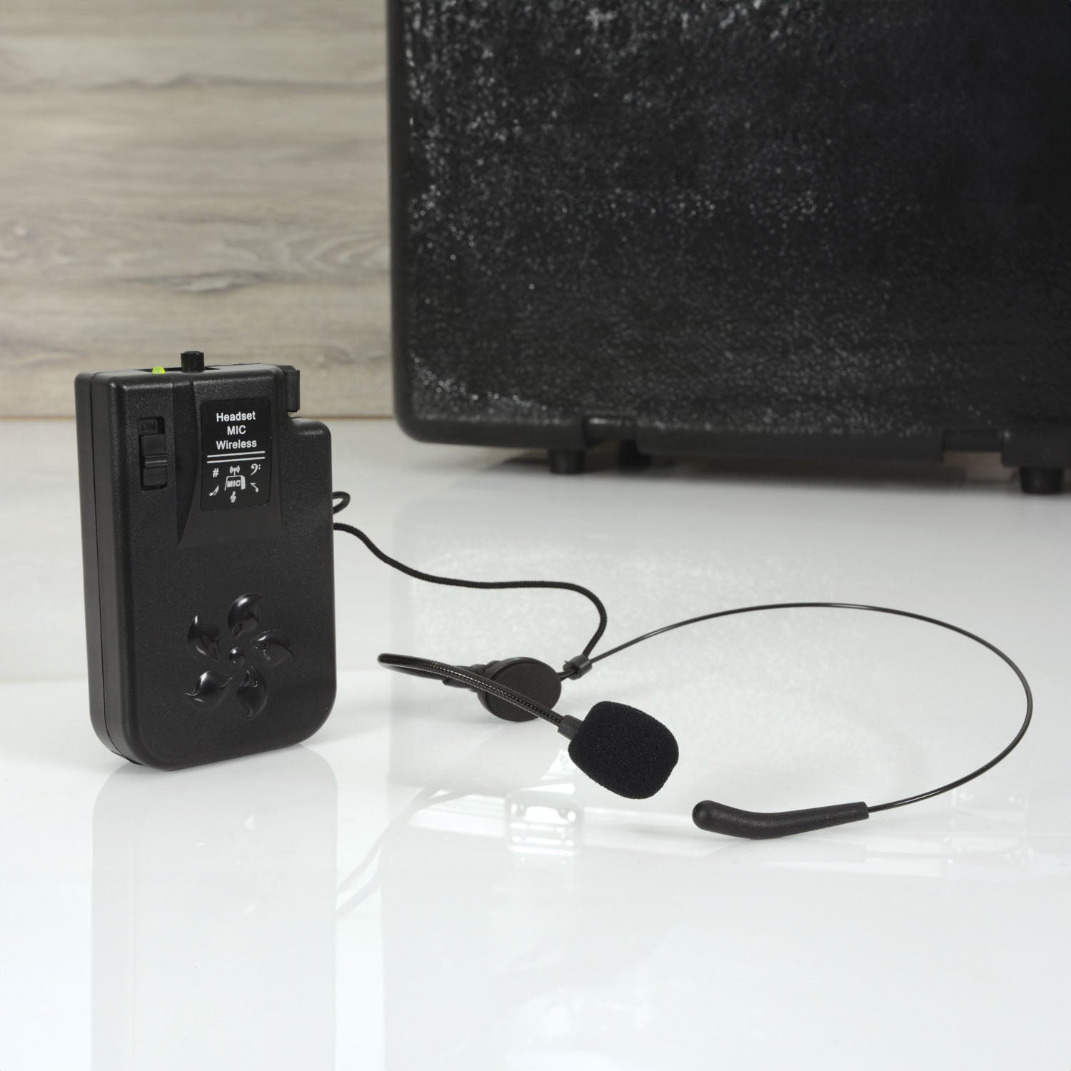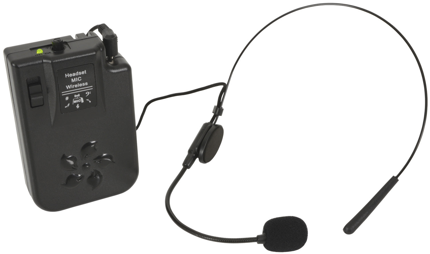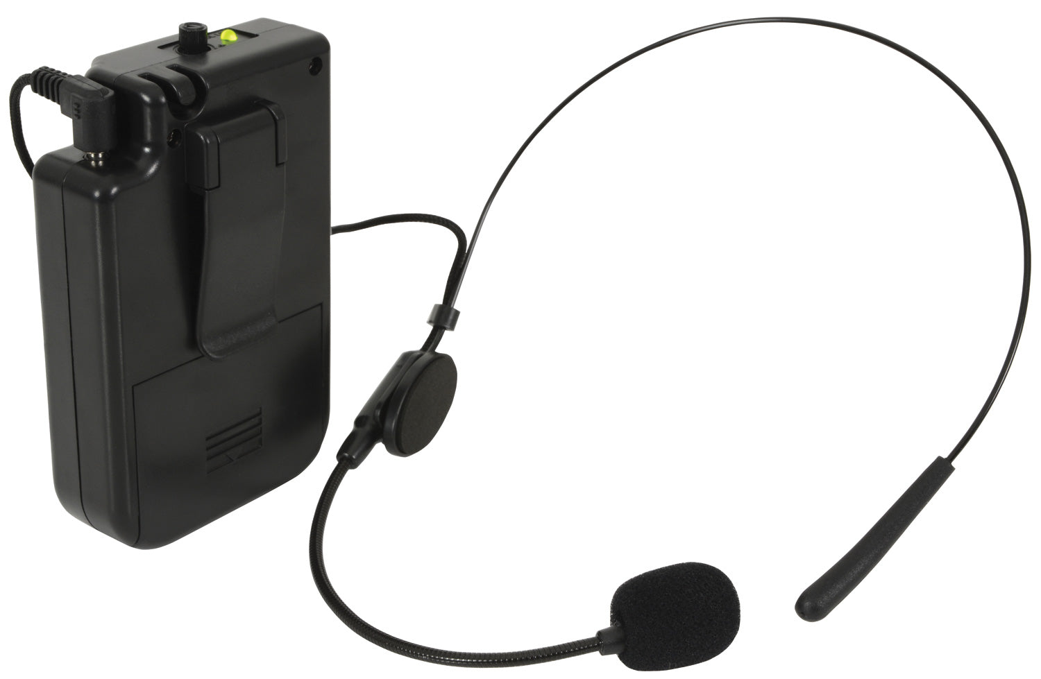 Headset microphone with VHF beltpack transmitter as an alternative or replacement for QTX portable PA units. It is compatible with Busker, Quest and PAL portable PA units.