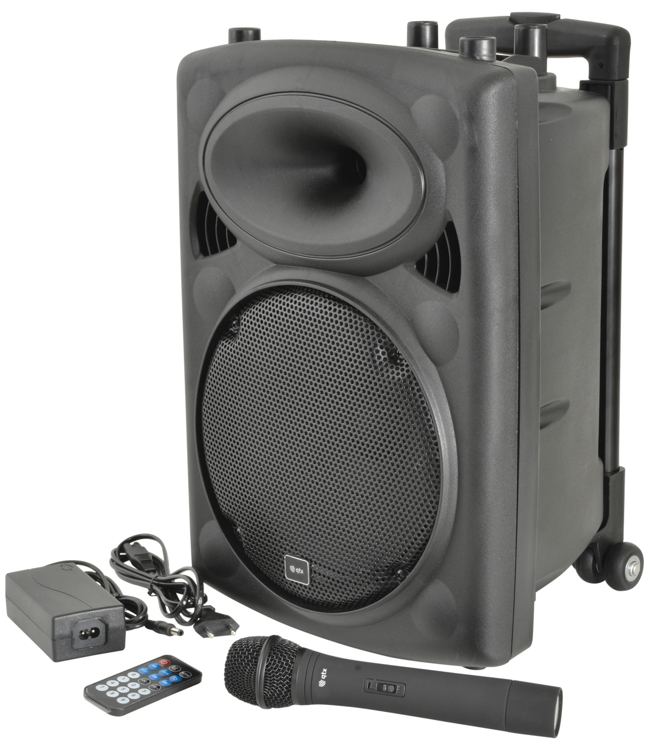 QTX: 178.839UK, Portable PA System, Bluetooth, 10 Inch Speaker, 50W Max, Built-in Microphones, Rechargeable, Compact with Trolley
